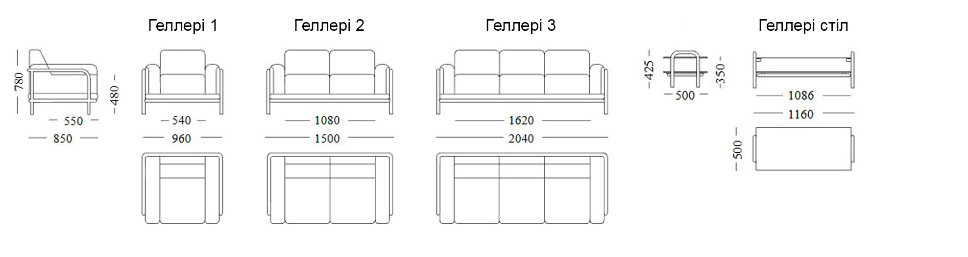 Диван для офісу Геллері виконаний в традиціях мінімалістичного дизайну. Його привабливість - в поєднанні скульптурності і потужного каркасу з нержавіючої сталі або сталі з полімерним покриттям. Широкі підлокітники, об'ємна подушка сидіння і регульовані опори відображають його хороші експлуатаційні властивості. Європейський стиль і строгий вигляд роблять дану модель ідеальною для сучасних кабінетів.