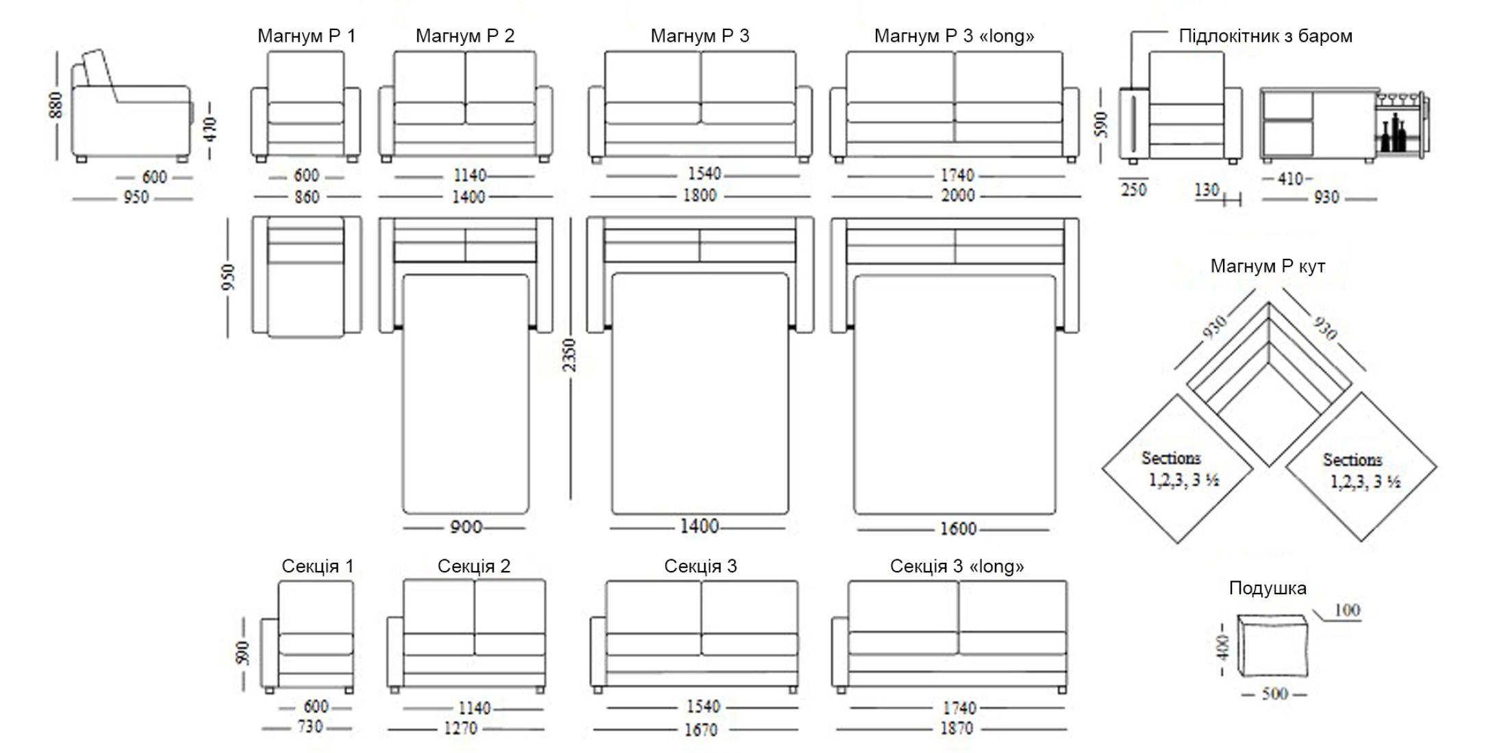Лаконічний і строгий диван Магнум Р поєднує в собі мінімалізм і комфорт. Це модель з великими можливостями: ми наділили її здатністю перетворюватися в меблі, що задовольняють всі ваші запити. Магнум Р міцно асоціюється з проведенням ділових зустрічей і презентацій. Призначений для переговорних кімнат, конференц-залів, зон очікування, кімнат відпочинку і приймалень. Також він підходить для дому, офісу, готелю та інших громадських місць.