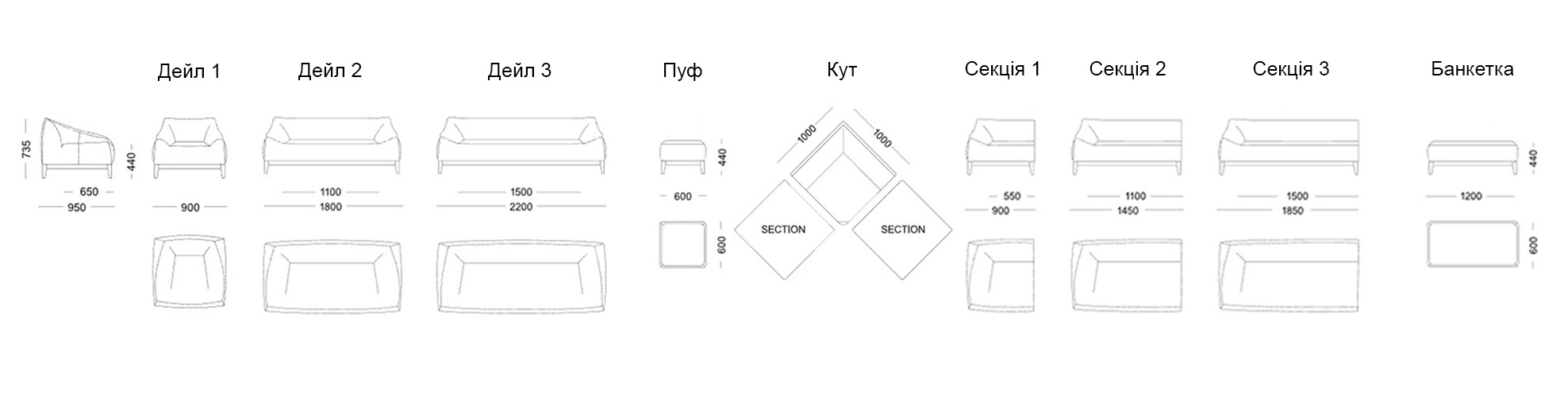| Розмір | 1800*950*735 мм |