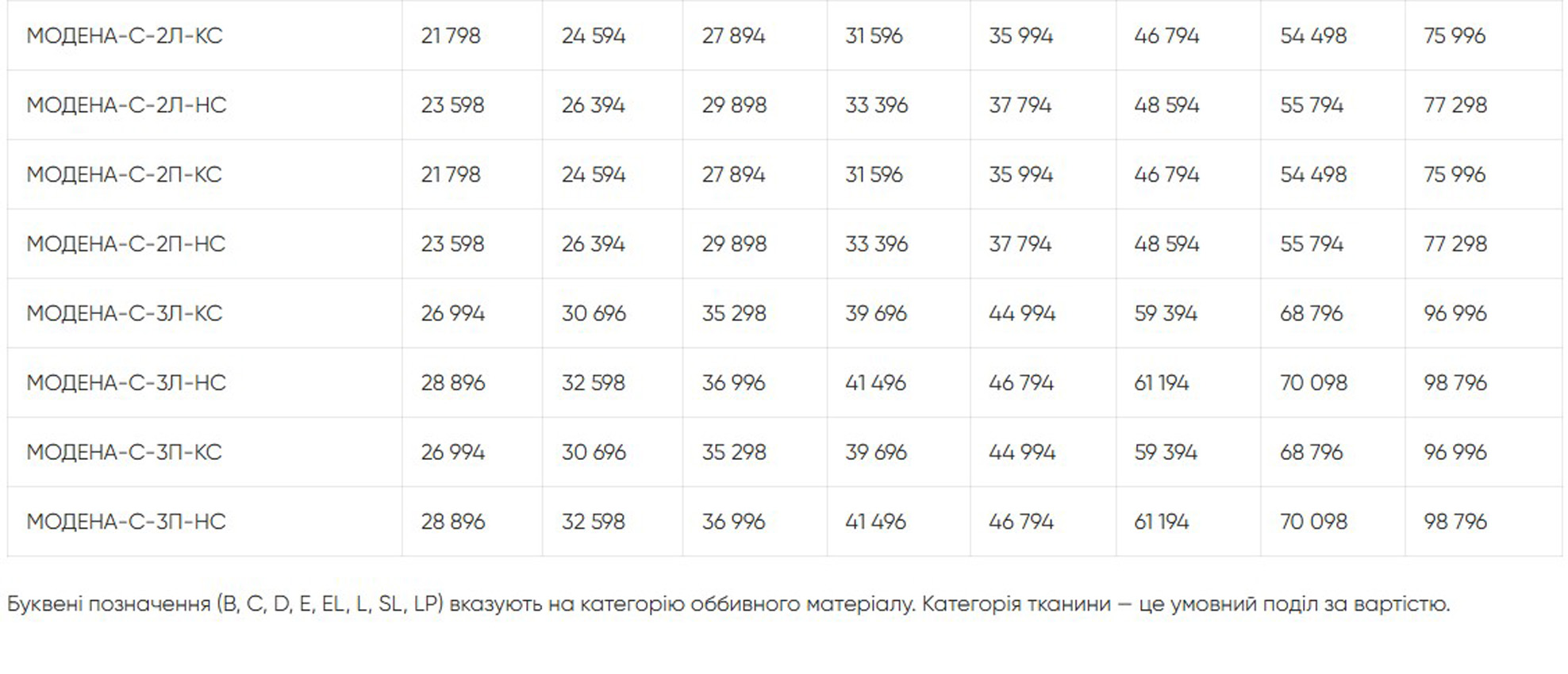 | Оббивка | тканина, шкірозамінник, шкіра |