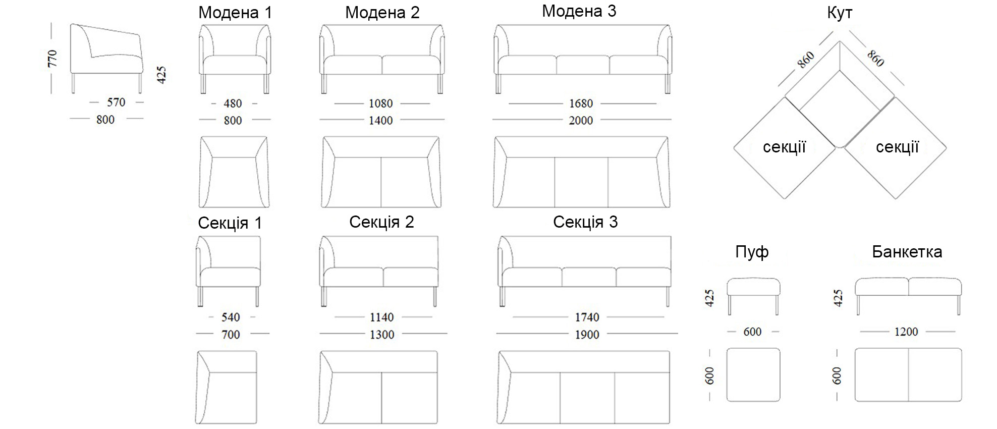 Диван Модена-3 серія "Модена" - це футуристичний мінімалізм в умовах офісу, зони очікування, салону або вітальні. Меблі виглядають лаконічно завдяки простим та чітким формам. Опори з нержавіючої або пофарбованої сталі. Сидіння і спинка зроблені з жорсткого настилу, завдяки чому форма виробу не піддасться деформації. Посадка середньої висоти та жорсткості. Як матеріал оббивки для моделі «Модена» рекомендуємо вибирати меблеву тканину, шкірозамінник, а також натуральну. м'яку та еластичну шкіру.