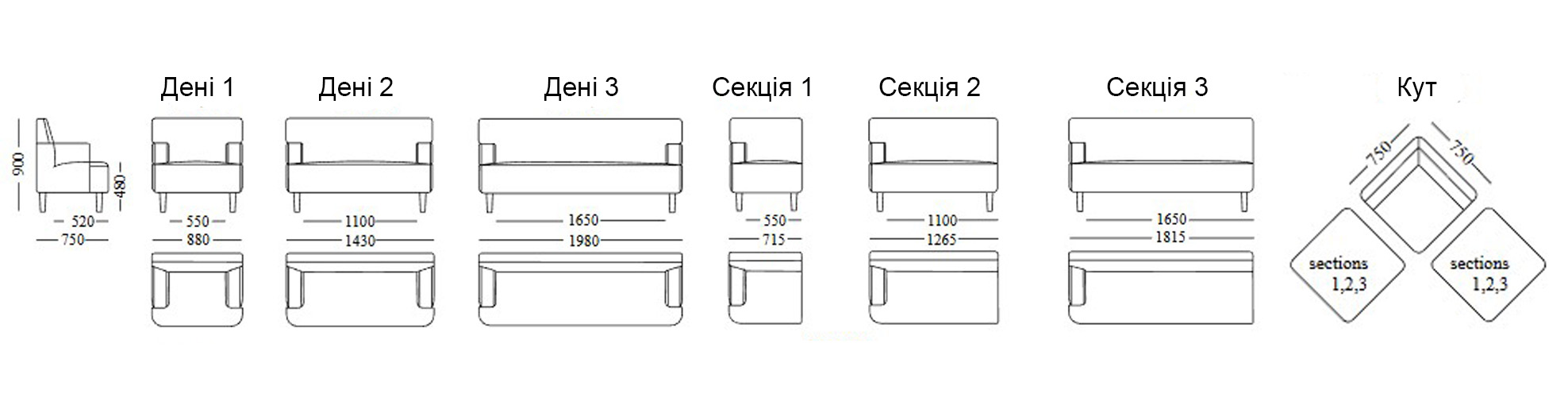 | Оббивка | тканина, шкірозамінник, шкіра |