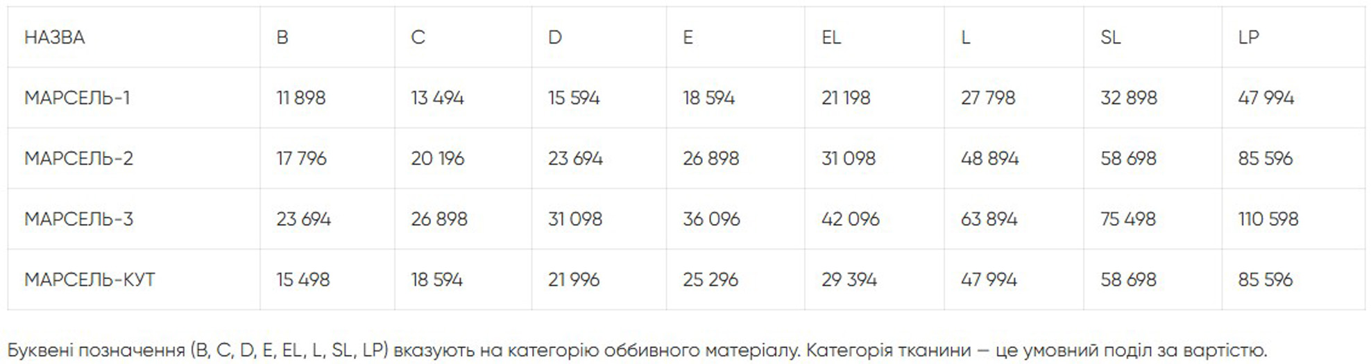| Оббивка | тканина, шкірозамінник, шкіра |