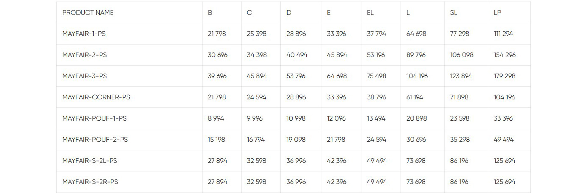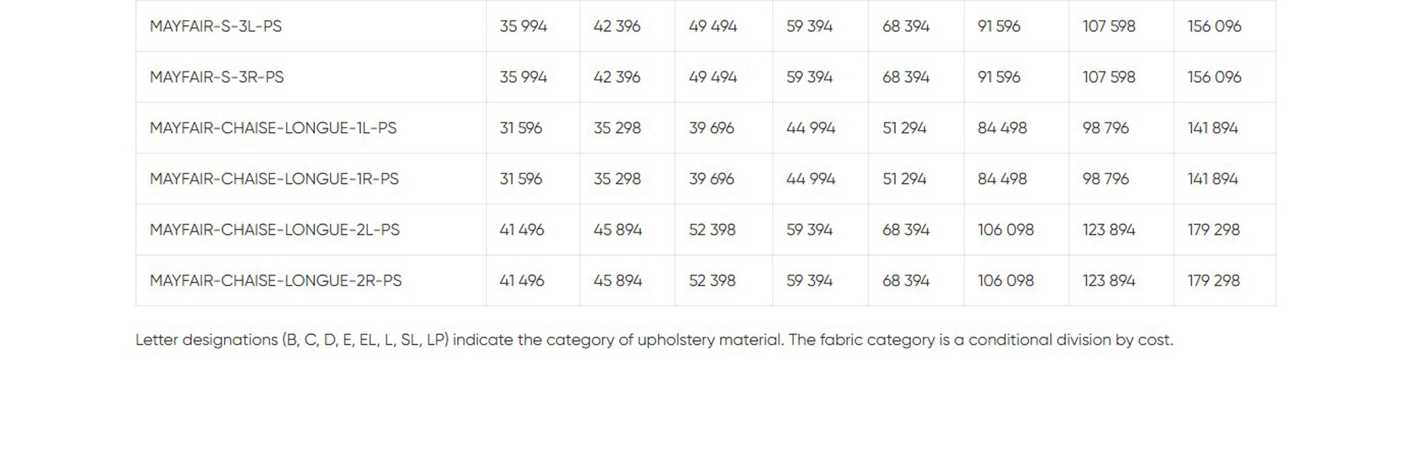 Крісло Мейфер-1: для великих квартир потрібні відповідні меблі, які органічно вписуються в простір. Великий диван або крісло дозволить з комфортом розташуватися цілій компанії. Завдяки продуманому дизайну і пропорціям на ньому буде зручно людям будь-якого зросту. Меблі Мейфер - це якість виконання і гарантія довговічності; стильний дизайн і кращі матеріали; можливість варіювати колірні рішення, підбирати комплекти для інтер'єру; ергономічність і зручність в кожній дрібниці. Модель виготовляється з якісних матеріалів на опорах з фарбованої сталі. Можливі різні варіанти оббивки дивана. Кутові дивани та інші меблі можна замовити в декількох варіантах.