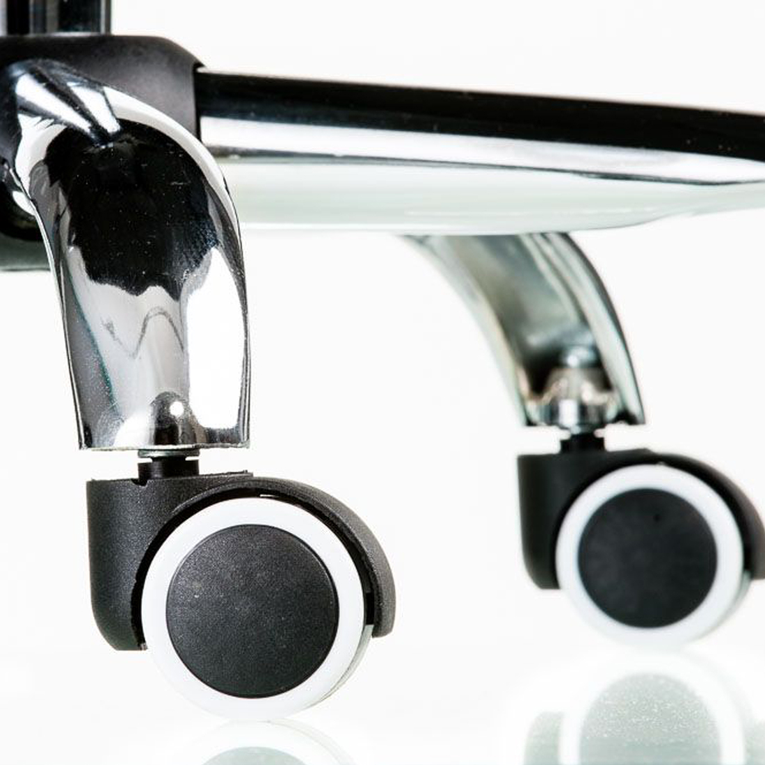 Прорезиненные колеса для бесшумного передвижения кресла по различным поверхностям.