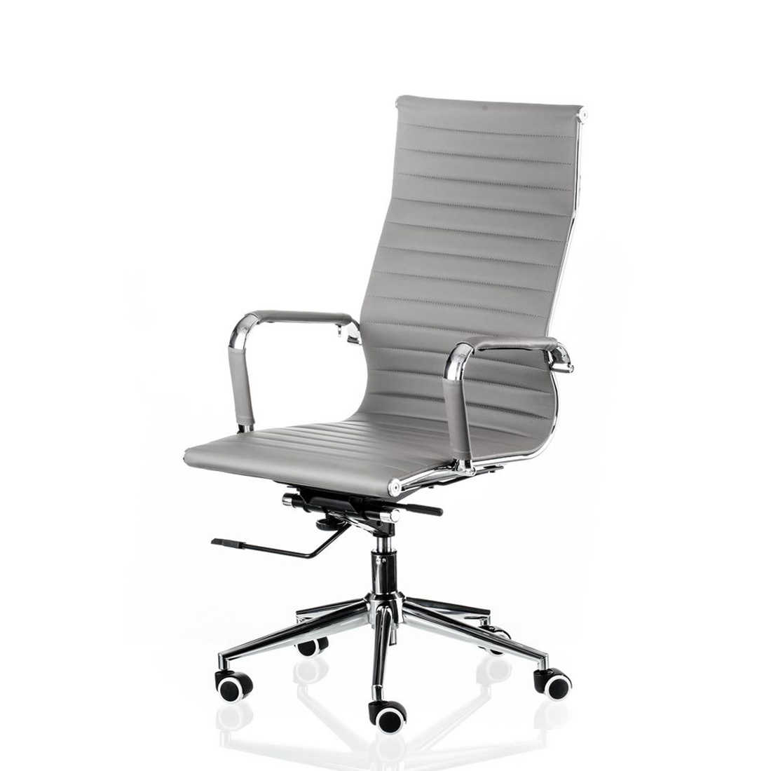 Дизайн. Декоративні смужки виконані декоративною прошивкою в тон оббивки, вони формують гарний і ергономічний зовнішній рельєф посадкового місця з легким масажним ефектом. Класичні кольори оббивки красиво поєднується з металевим каркасом і хрестовиною крісла.