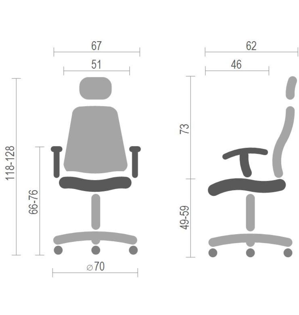 Механізми. У кріслі встановлено синхромеханізм, який регулює синхронізацію при відкиданні спинки крісла і може фіксуватися в відкинутому положенні. При цьому сидіння, для більш комфортного положення тіла, має дещо менший кут нахилу, ніж спинка крісла. Синхромеханізм регулюється за допомогою гвинтової ручки під сидінням під вагу користувача. Газліфт дозволяє відрегулювати висоту крісла в залежності від вашого зросту або висоти робочого столу.