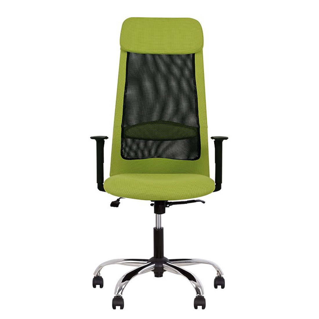 Крісло Новий Стиль FRANK GTR TILT (WS-122) PL64 - ця модель дбайливо піклується про фізіологічно правильне положення тіла та збереження здорової постави. Безумовною перевагою крісла є дихаючий матеріал спинки з еластичної сітки, що не перешкоджає вільній циркуляції повітря і дарує відчуття легкості навіть у спекотну погоду. Спинка також має м'який підголівник. Пластикові підлокітники у цій моделі регулюються. Модель укомплектована чорною пластиковою основою. Крісло надасть престижність Вашому офісу та підкреслить Ваш професіоналізм.