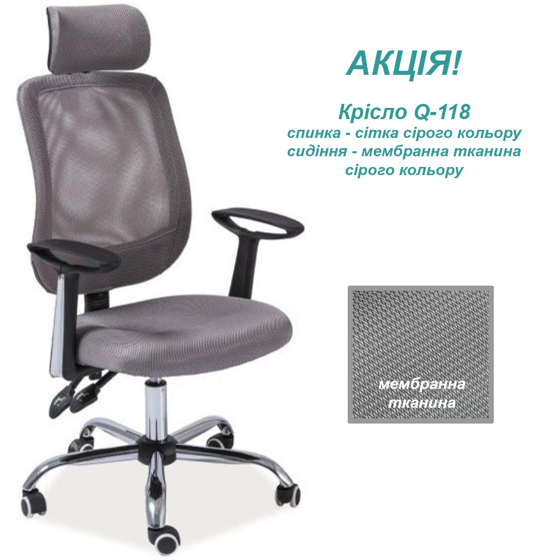 Ергономічне крісло для офісу Q-118 Signal з тканинною оббивкою сірого кольору.