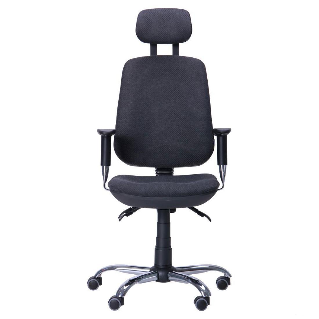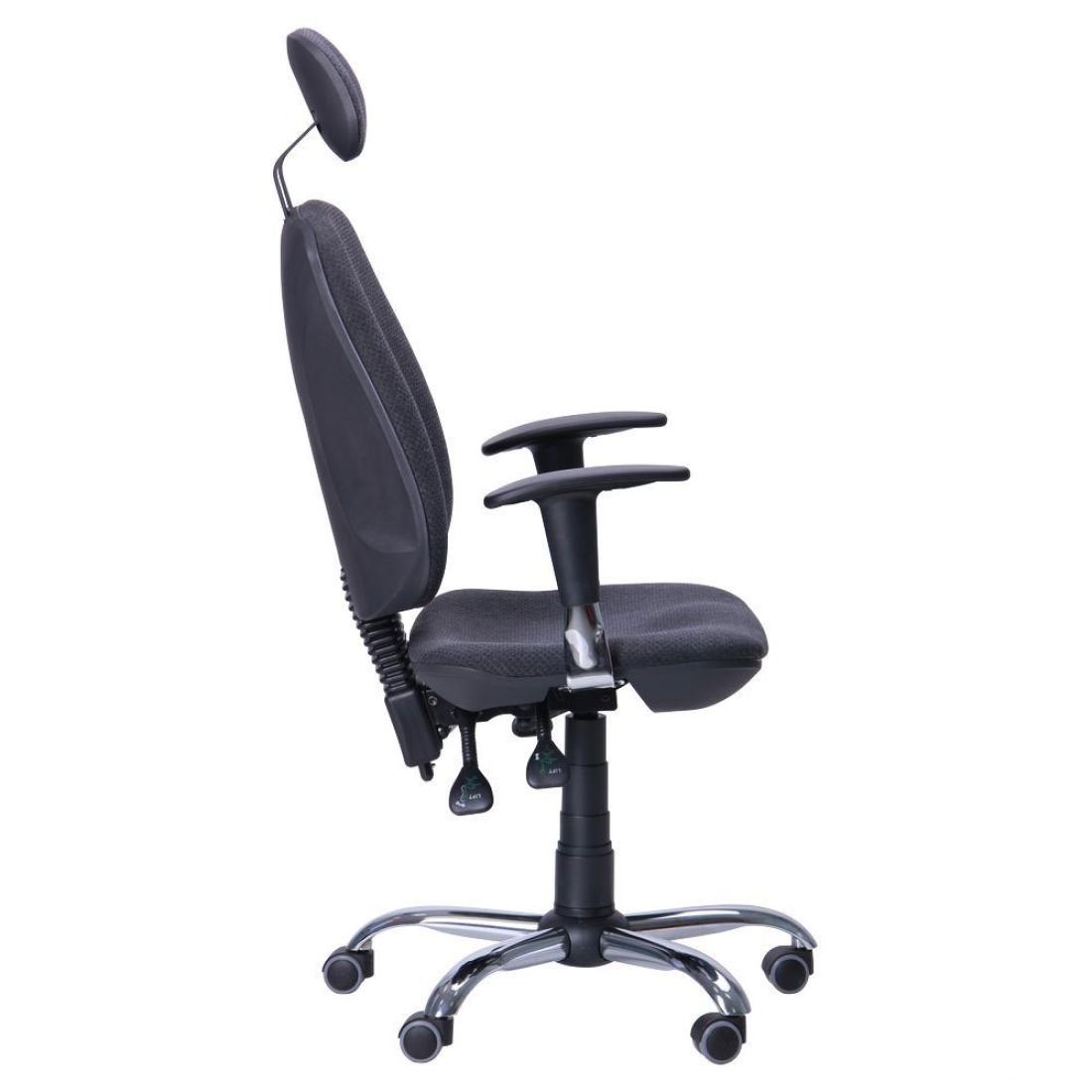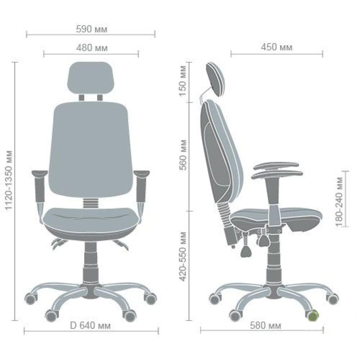 Підлокітники. Масивні підлокітники Т-подібної форми в даному кріслі комбіновані. Основа виготовлена з блискучого металу, а робоча частина - з поліуретану. Робоча поверхня підлокітників широка, що забезпечить рукам надійну опору. Поверхня пластика текстурированная, приємна на дотик, щоб руки не зсковзували з неї під час роботи. Висота підлокітників в нижньому положенні сидіння дозволяє наблизити крісло впритул до столу для збільшення вільного простору приміщення.