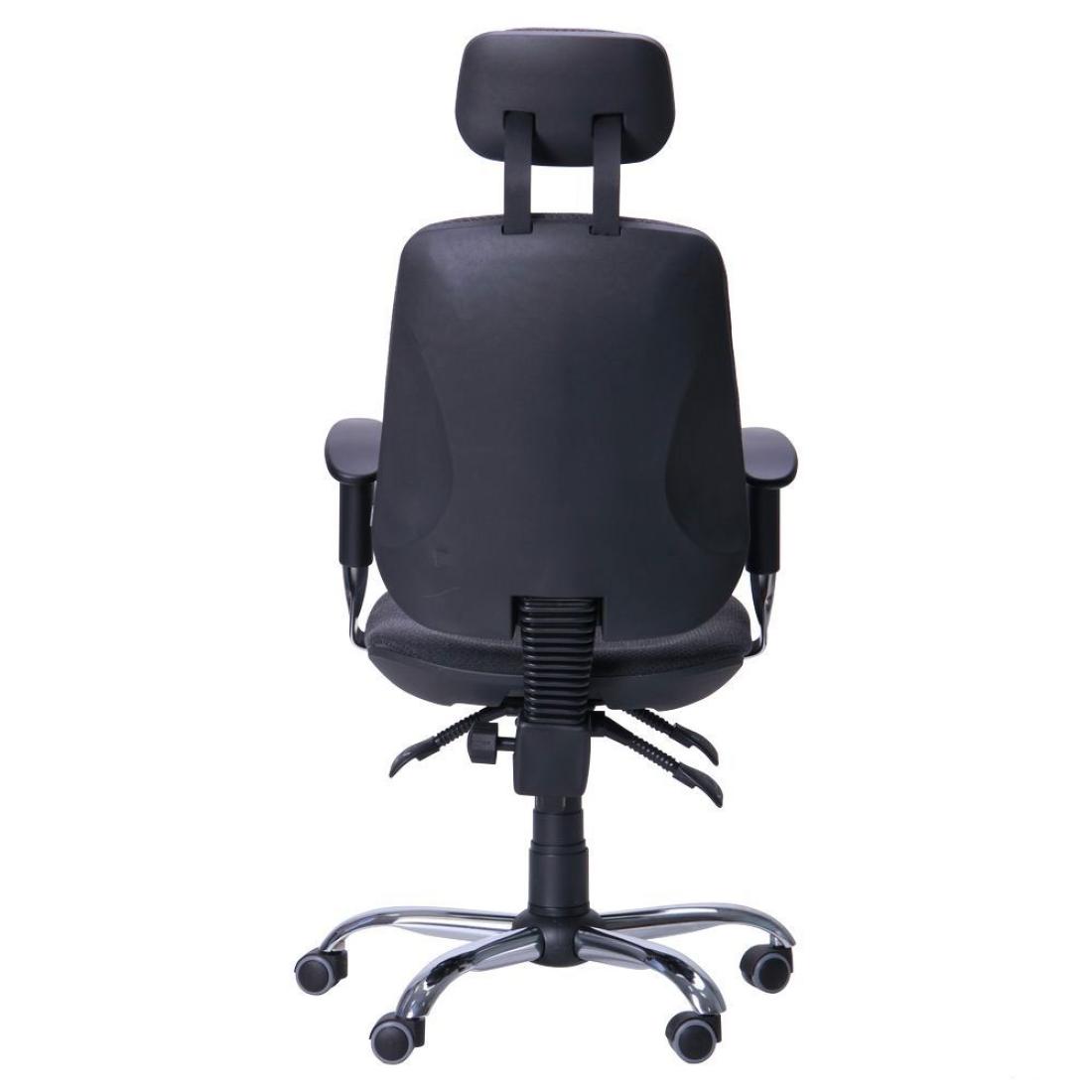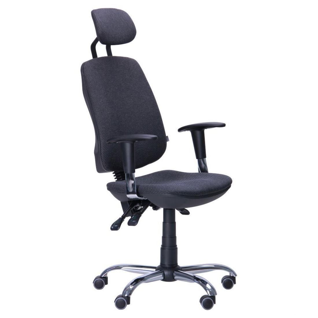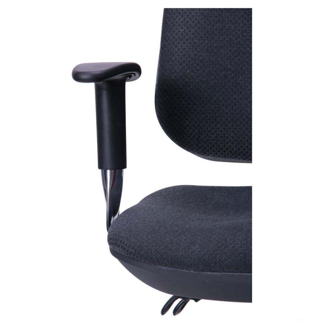 Підлокітники. Масивні підлокітники Т-подібної форми в даному кріслі комбіновані. Основа виготовлена з блискучого металу, а робоча частина - з поліуретану. Робоча поверхня підлокітників широка, що забезпечить рукам надійну опору. Поверхня пластика текстурированная, приємна на дотик, щоб руки не зсковзували з неї під час роботи. Висота підлокітників в нижньому положенні сидіння дозволяє наблизити крісло впритул до столу для збільшення вільного простору приміщення.