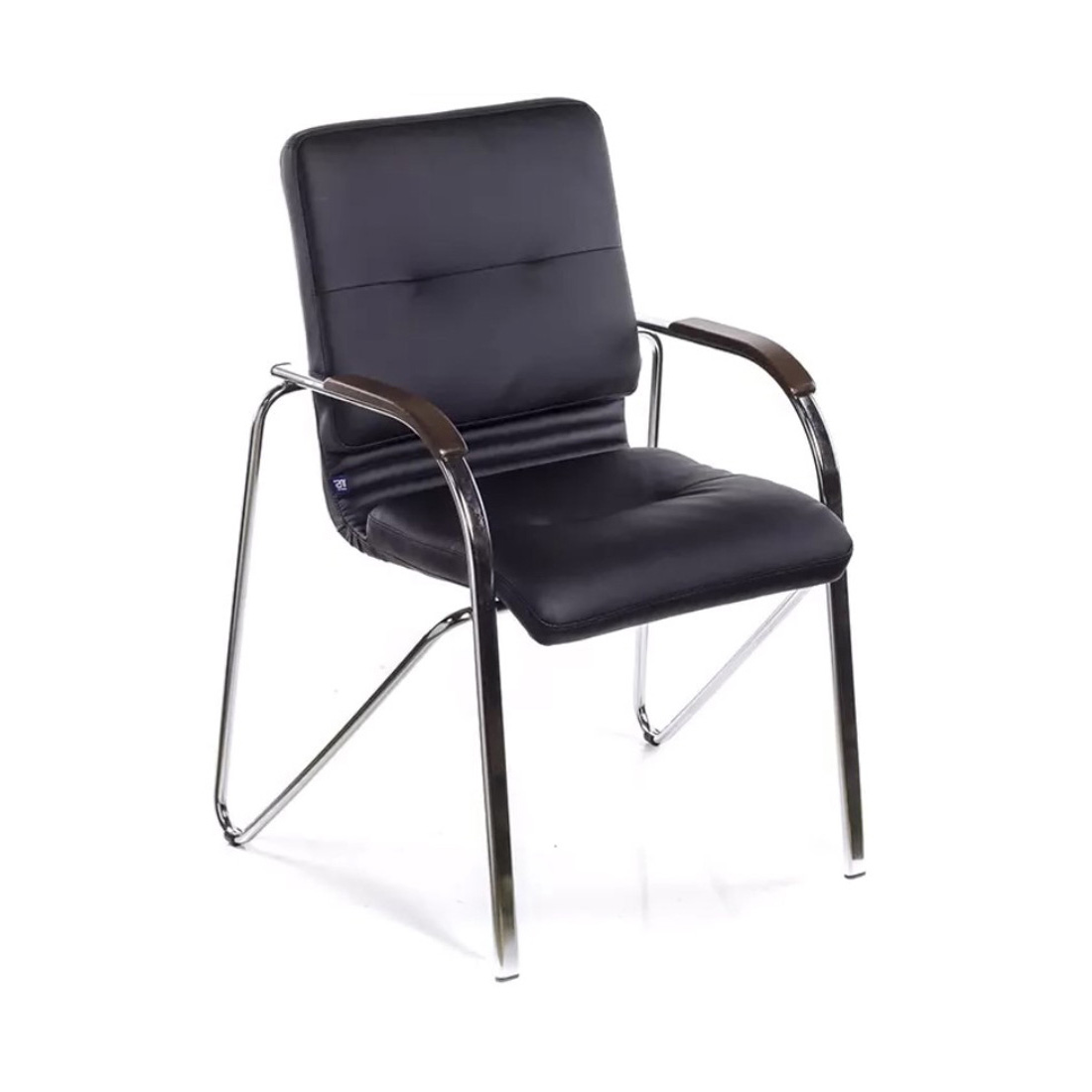 Стілець Самба Ultra - це зручний стілець з м'якими спинкою і сидінням, хромовані ніжки якого плавно переходять в підлокітники, на яких є дерев'яні накладки.