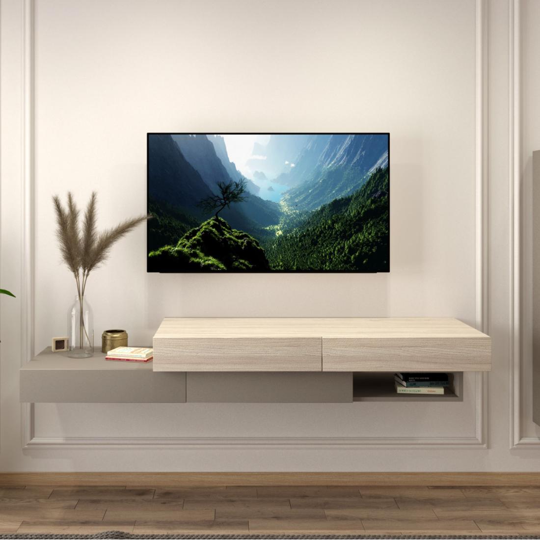 Навісна настінна тумба під телевізор в зал НOS-121/1 (Глина та Залізний камінь)