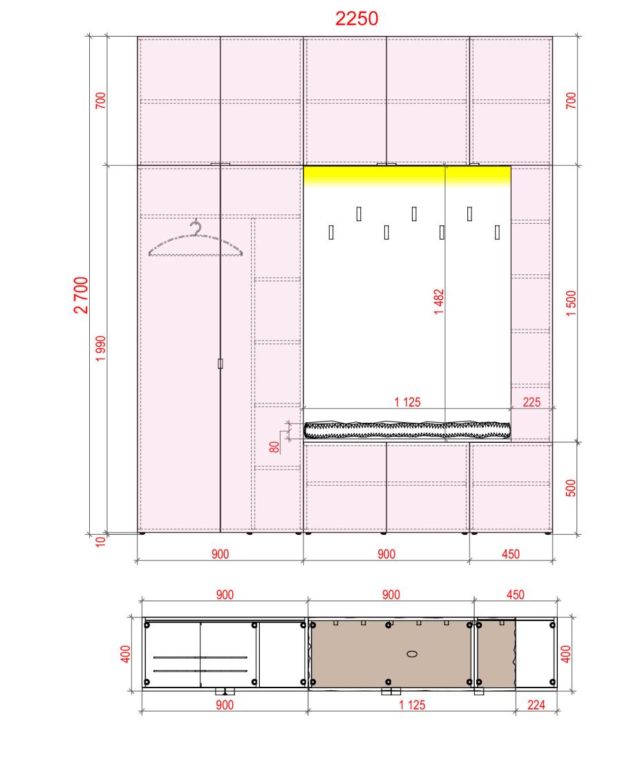 висота — 2700 мм. - Корпус, фасади та полички виготовленні з ЛДСП товщиною 18 мм.