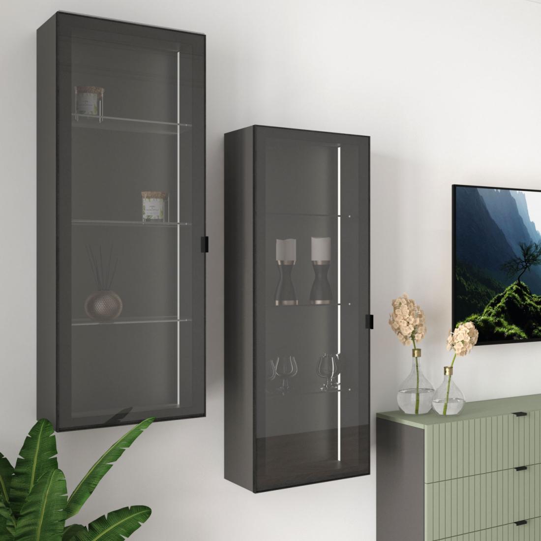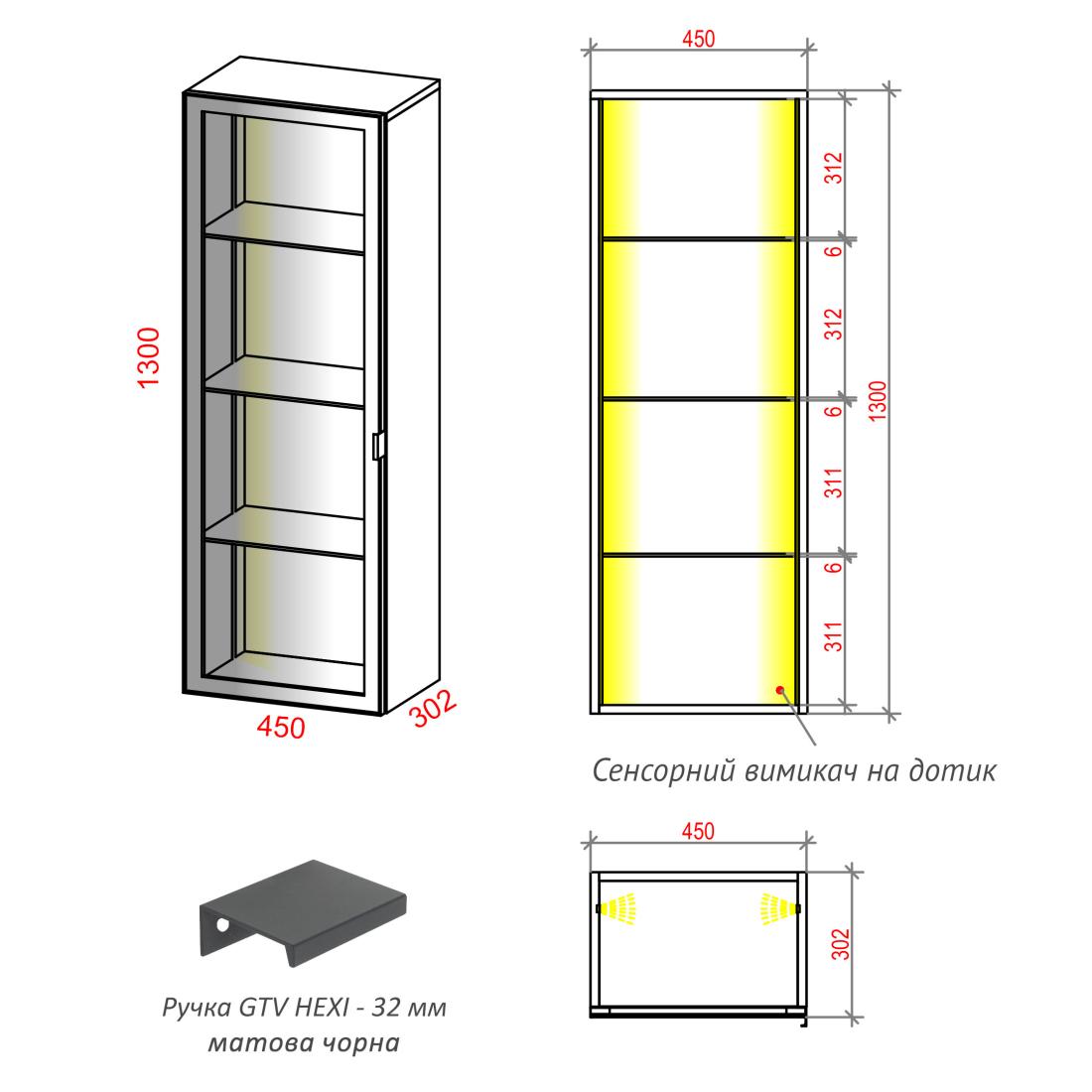 висота — 1300 мм. - Фасад — скло Stopsol Classic графіт 4 мм в чорному профілі