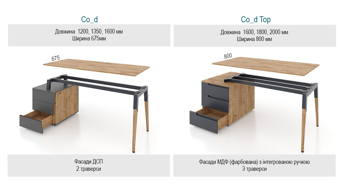 Меблі для керівників Компаунд ТОП (Compound TOP/Co_d TOP) - чудове рішення для організації сучасного офісу для керівника в стилі еко. Столи на металевих опорах створюють візуальну легкість простору, кольорові деталі додають фарб в стильний дизайн. Особливість колекції Co_d TOP- ніжки з масиву ясеня. Ясень має такі характеристики, як твердість, довговічність і особливий золотистий відтінок. Завдяки його використанню, столи в серії Co_d TOP мають гарні та елегантні опори. Co_d - концепція офісних меблів нового покоління - екологічність, лаконічність, функціональність.