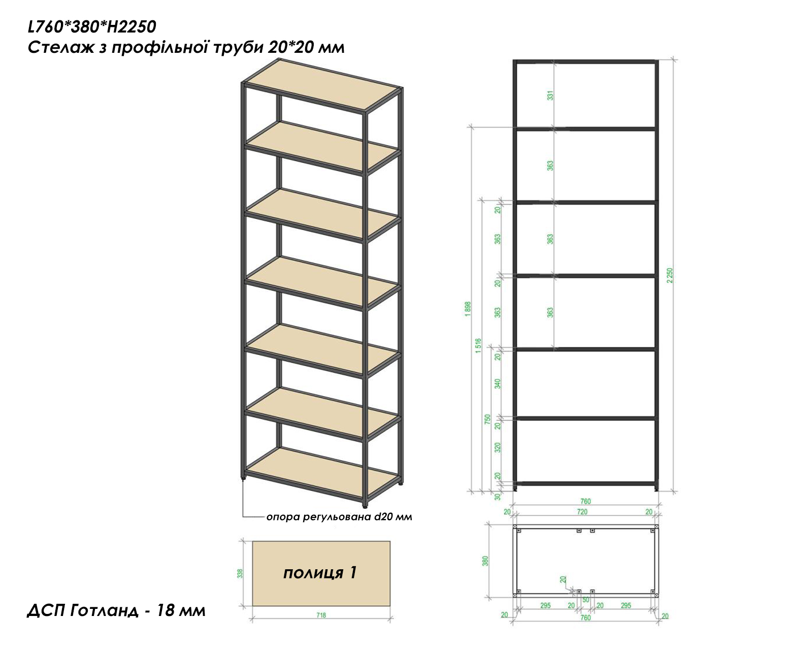 | Додаткові характеристики | Товщина труби каркасу - 20*20 мм, полиці - ДСП 18 мм |
