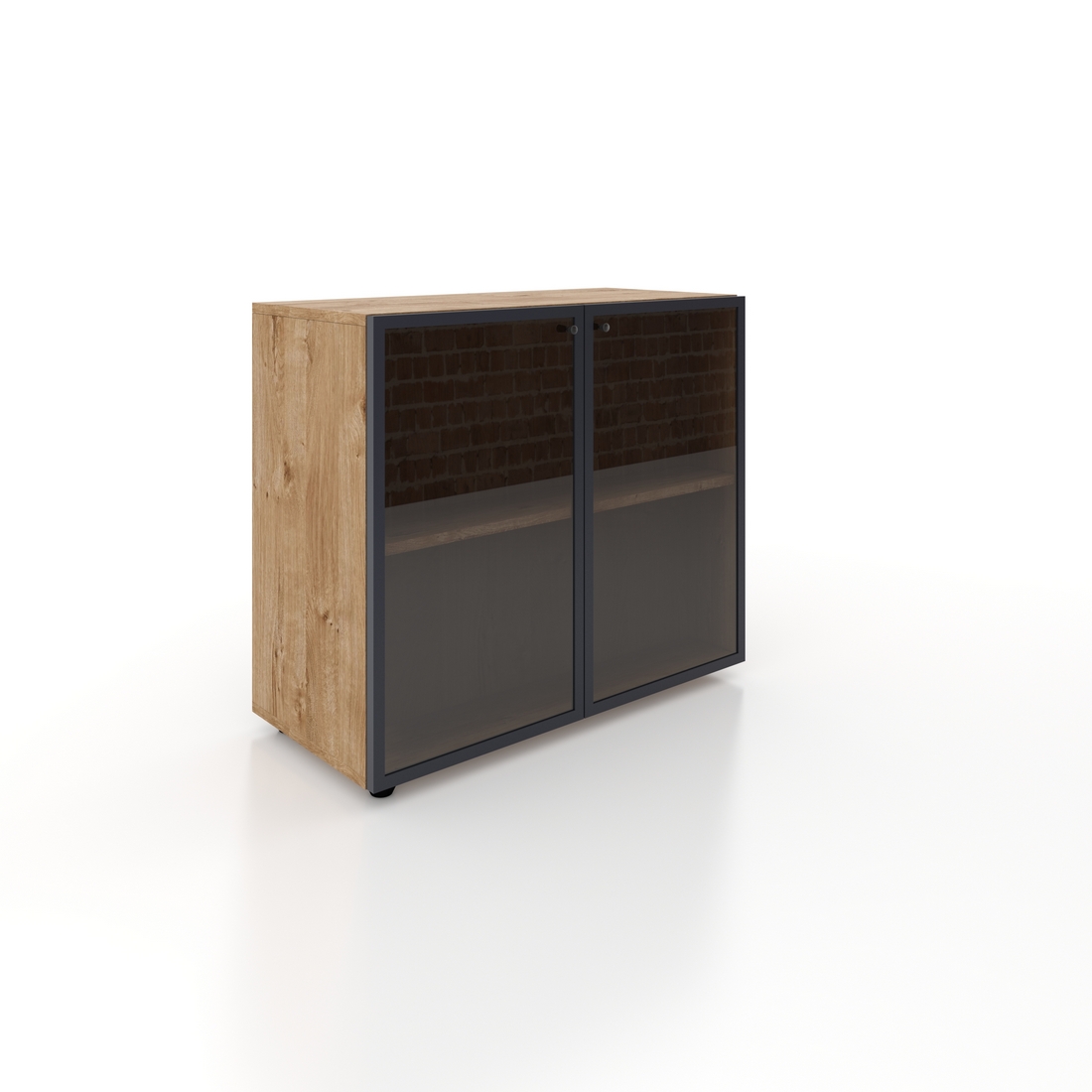 | Додаткові характеристики | Фасади зі склом "графіт прозоре" товщиною 4мм у чорній алюмінієвій рамці 20*20мм з точковою чорною ручкою |