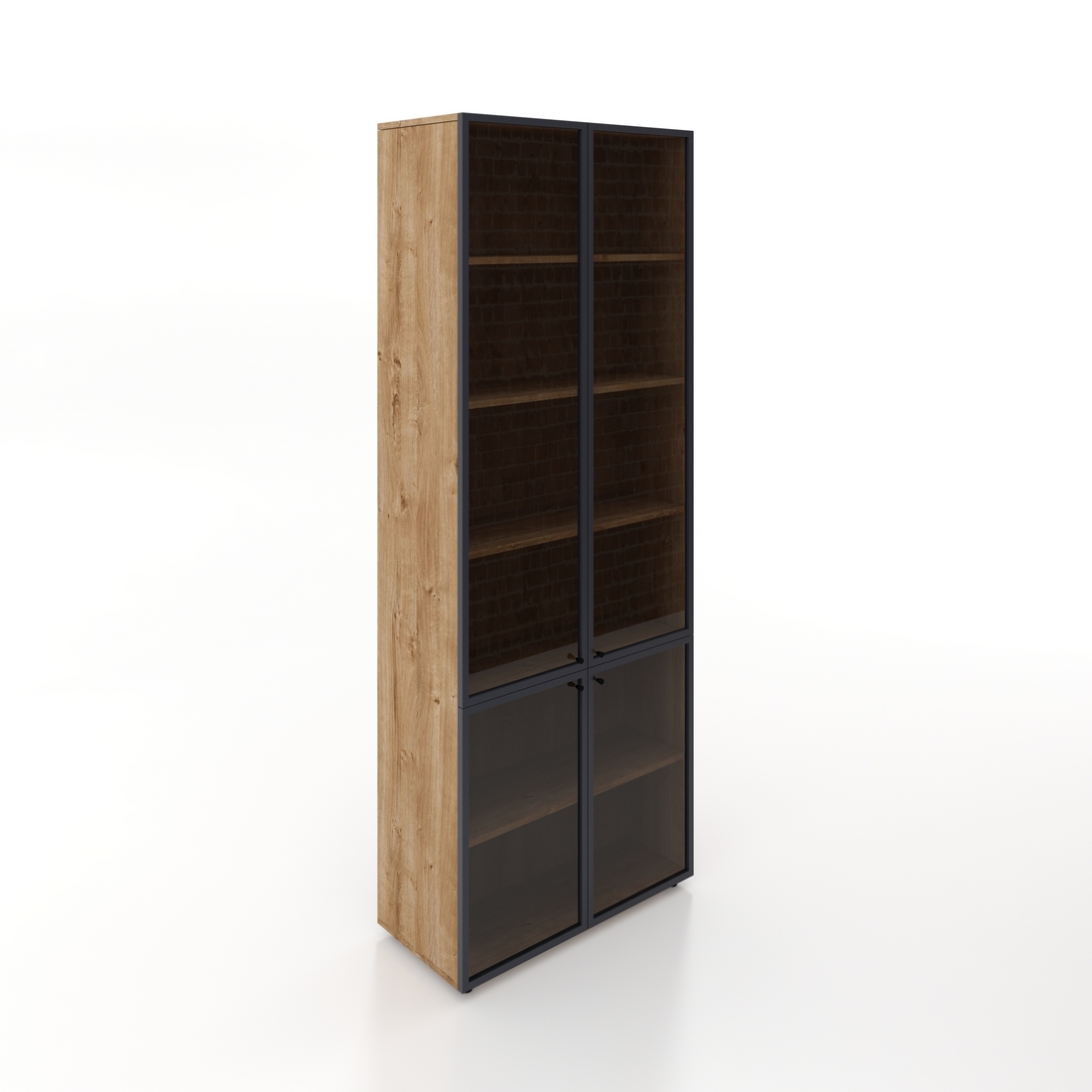| Додаткові характеристики | Фасади зі склом "графіт прозоре" товщиною 4мм у чорній алюмінієвій рамці 20*20мм з точковою чорною ручкою |