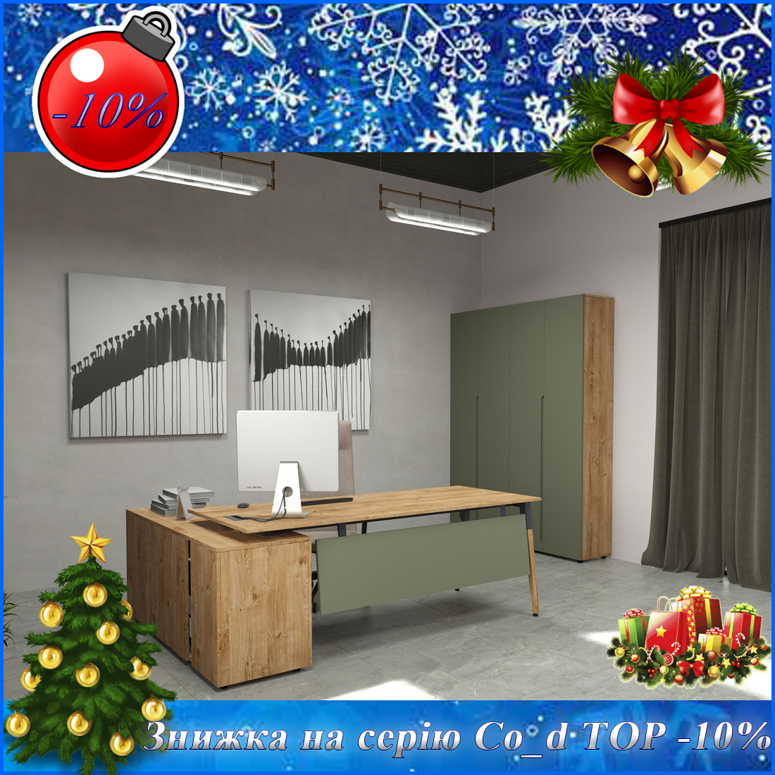 Наша нова колекція меблів для керівників Co_d Top (Compound Top/Компаунд ТОП) — ідеальне рішення для організації сучасного кабінету в стилі Еко. Столи на дерев'яних опорах створюють візуальну легкість, кольорові деталі додають яскравих барв в стильний дизайн. Особливості колекції Co_d Top — ніжки з масиву ясеня. Ясень володіє такими характеристиками як твердість, довговічність та особливий золотистий відтінок. Цей матеріал ми використали, щоб підкреслити красиві та елегантні опори серії Co_d Top. Концепція меблів нового покоління — екологічність, лаконічність та функціональність.