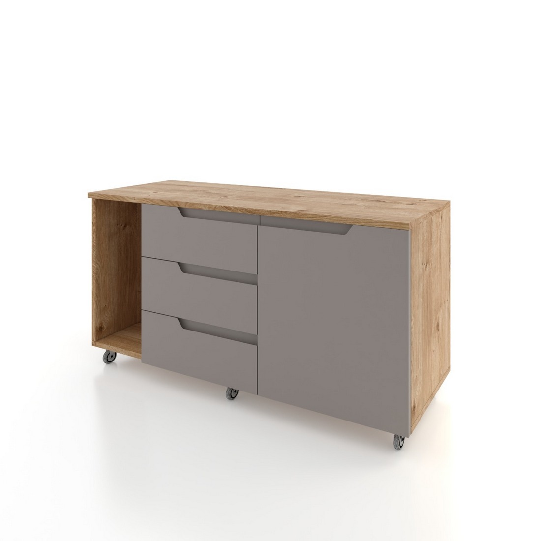 - В тумбах мобільних торцьові розпашні фасади на Tip-On.