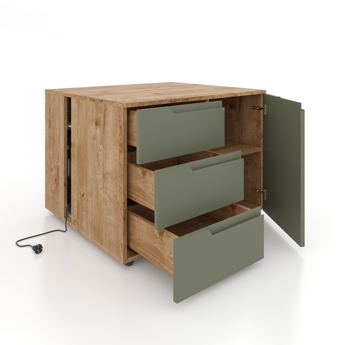 - Серійні кольори: ДСП (деревоподібна) "Готланд" в поєднанні з МДФ (фарбована) "Оливка"/"Графіт"/"Глина"/"Марсала".