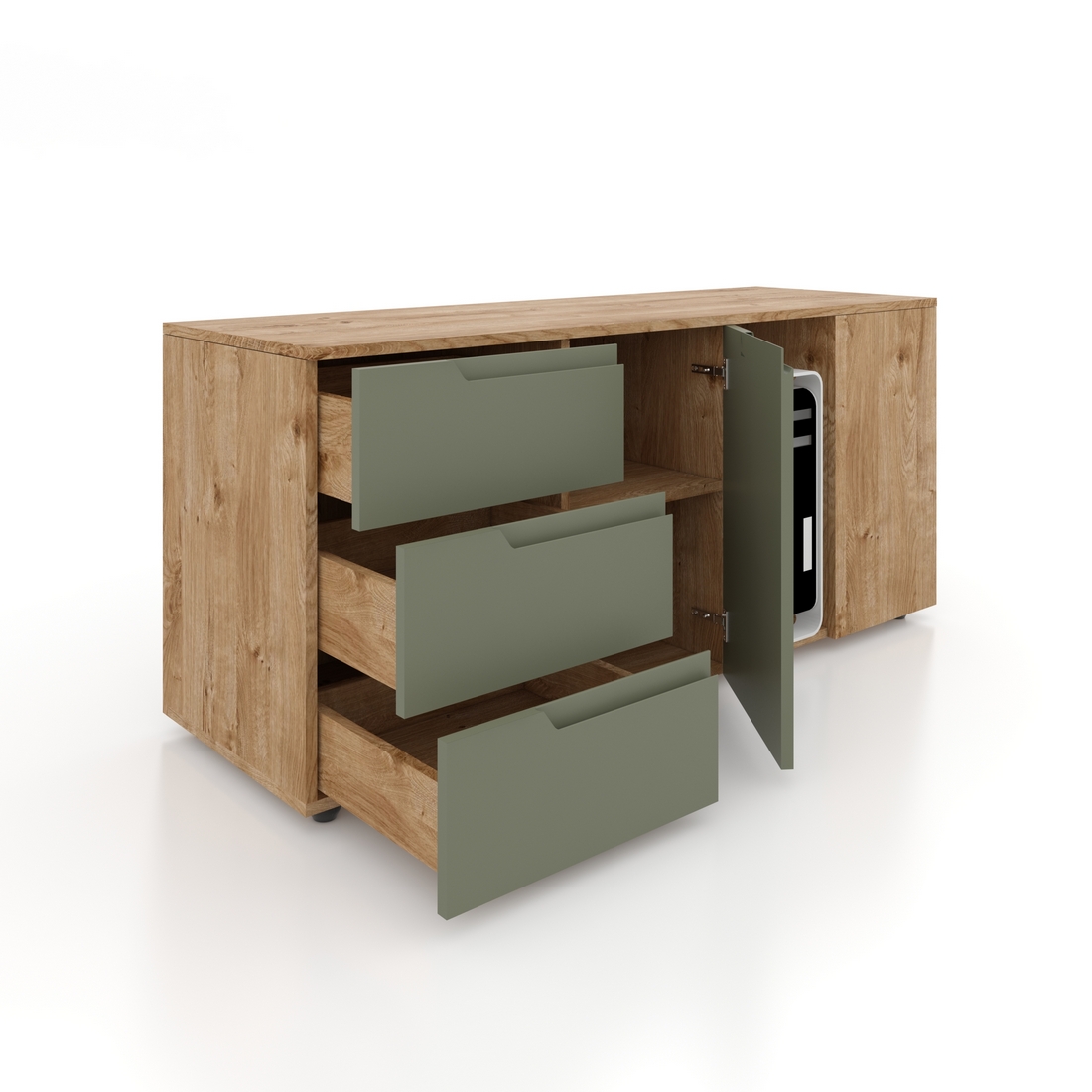 - Серійні кольори: ДСП (деревоподібна) "Готланд" в поєднанні з МДФ (фарбована) "Оливка"/"Графіт"/"Глина"/"Марсала".