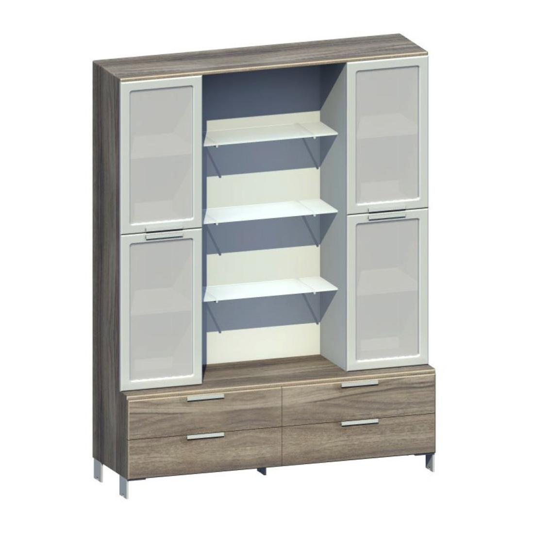 - Полиці в центральних відкритих секціях - скло Сатин біле 10 мм на циліндричних полкодержателях.