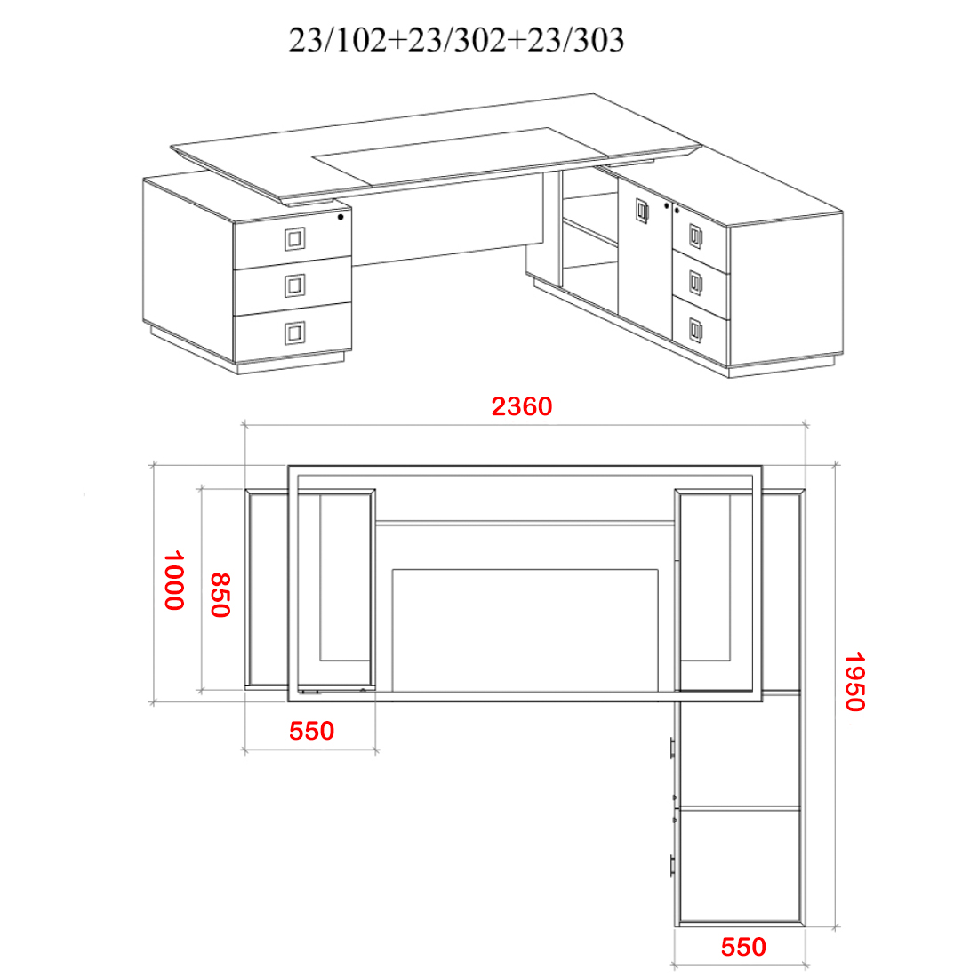 | Стільниця + екран | 23/102 | 2000*1000*770h | 1 |