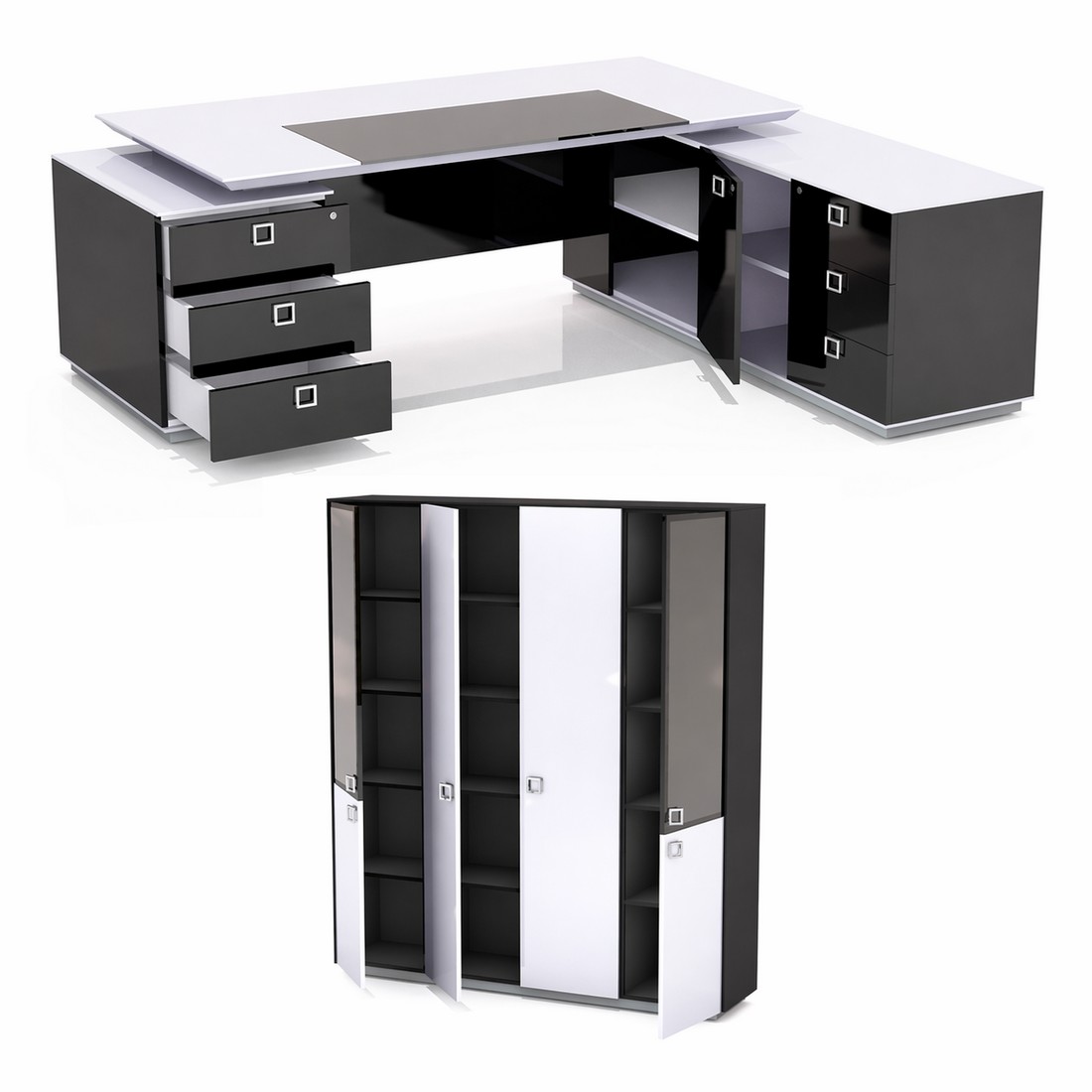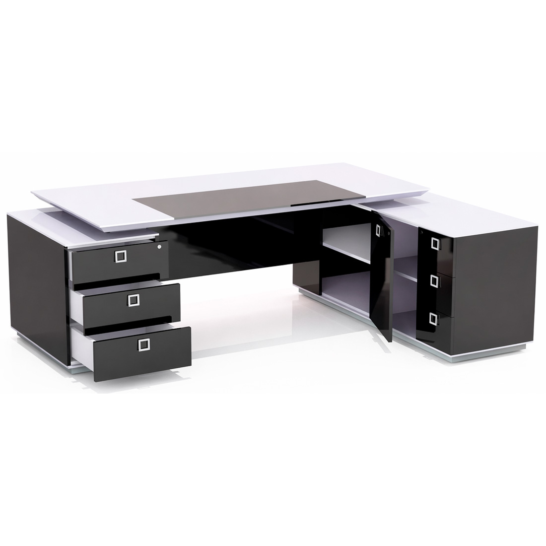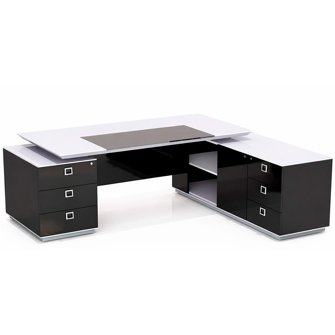 Кабінет керівника Morion — яскравий представник сучасного стилю і презентабельності. Завдяки своєму строгому і лаконічному дизайну, цей кабінет гідно оцінять впевнені і прогресивні керівники. Прямокутні форми всіх елементів і глянсова основа робочих поверхень додадуть образу приміщення свій неповторний шарм і акуратність.