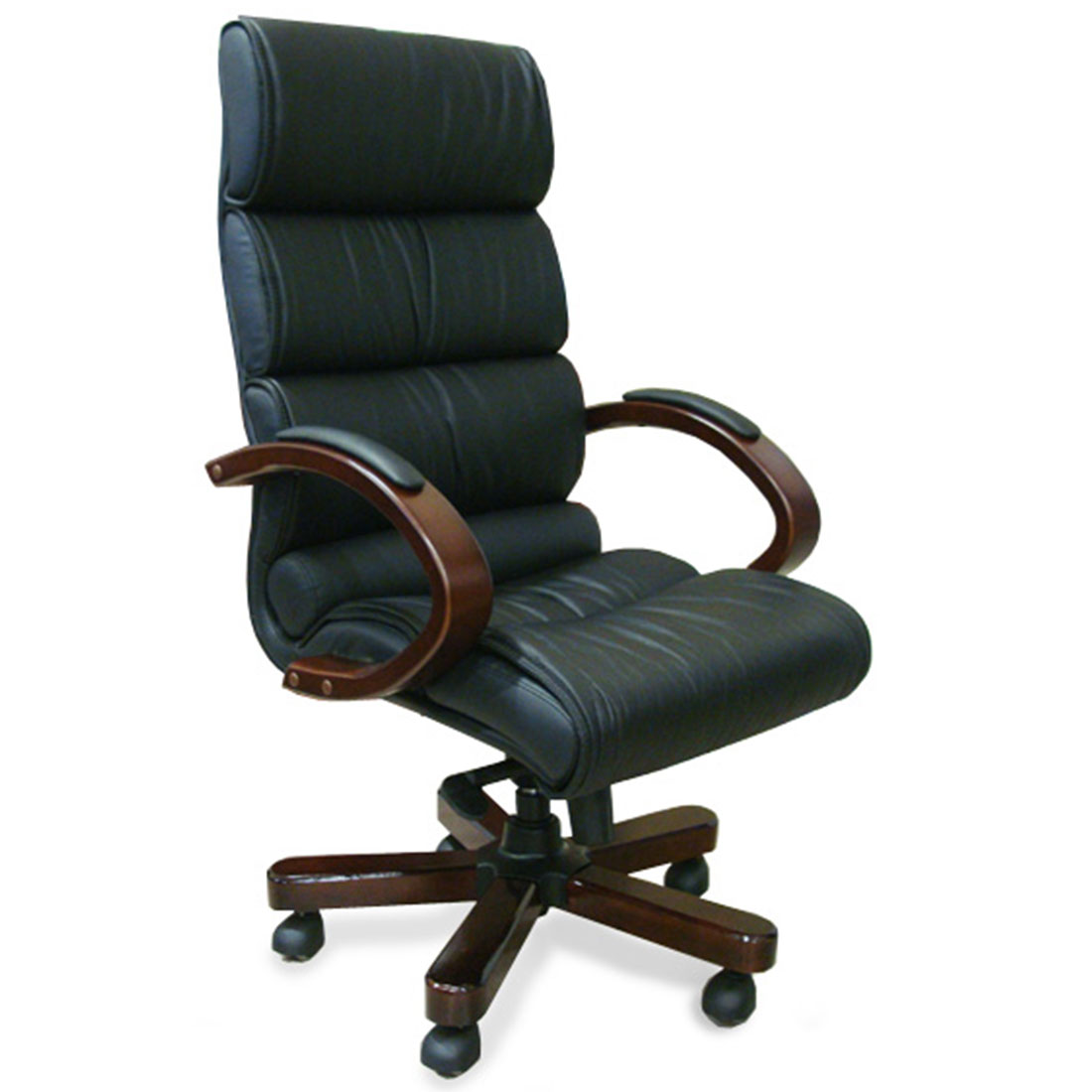Підлокітники крісла виготовлені з масиву дерева зі шкіряною накладкою. Хрестовина крісла має посилений металевий каркас з декоративними накладками.