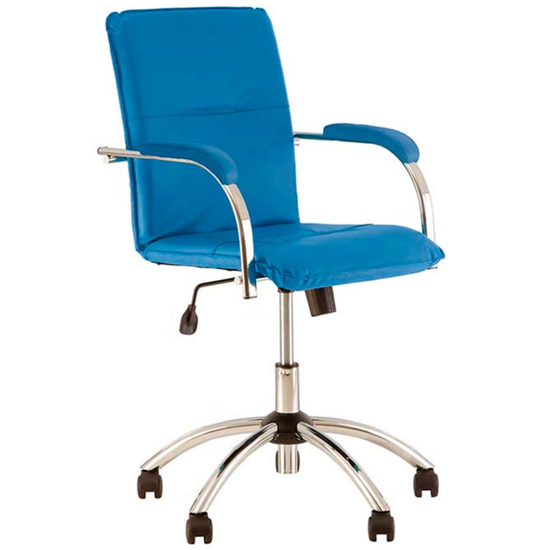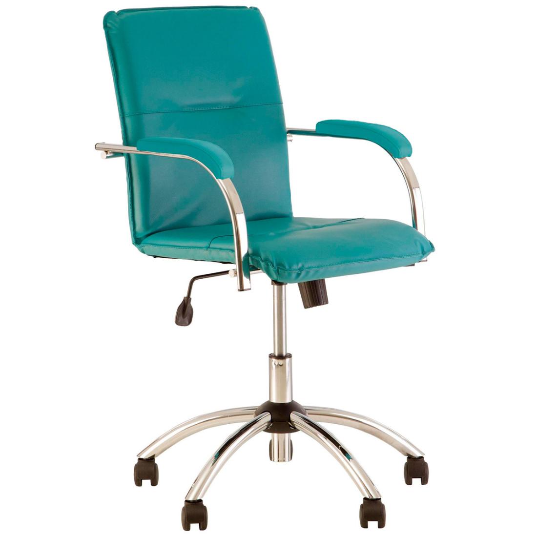 Крісло Самба GTP S обладнано підлокітниками з м'якими накладками. Корпус зроблений з металу з хромованим покриттям. Основа - хрестовина з колесами. Вільне хитання і регулювання висоти крісла. Є можливість фіксації нахилу спинки і сидіння в одному положенні.