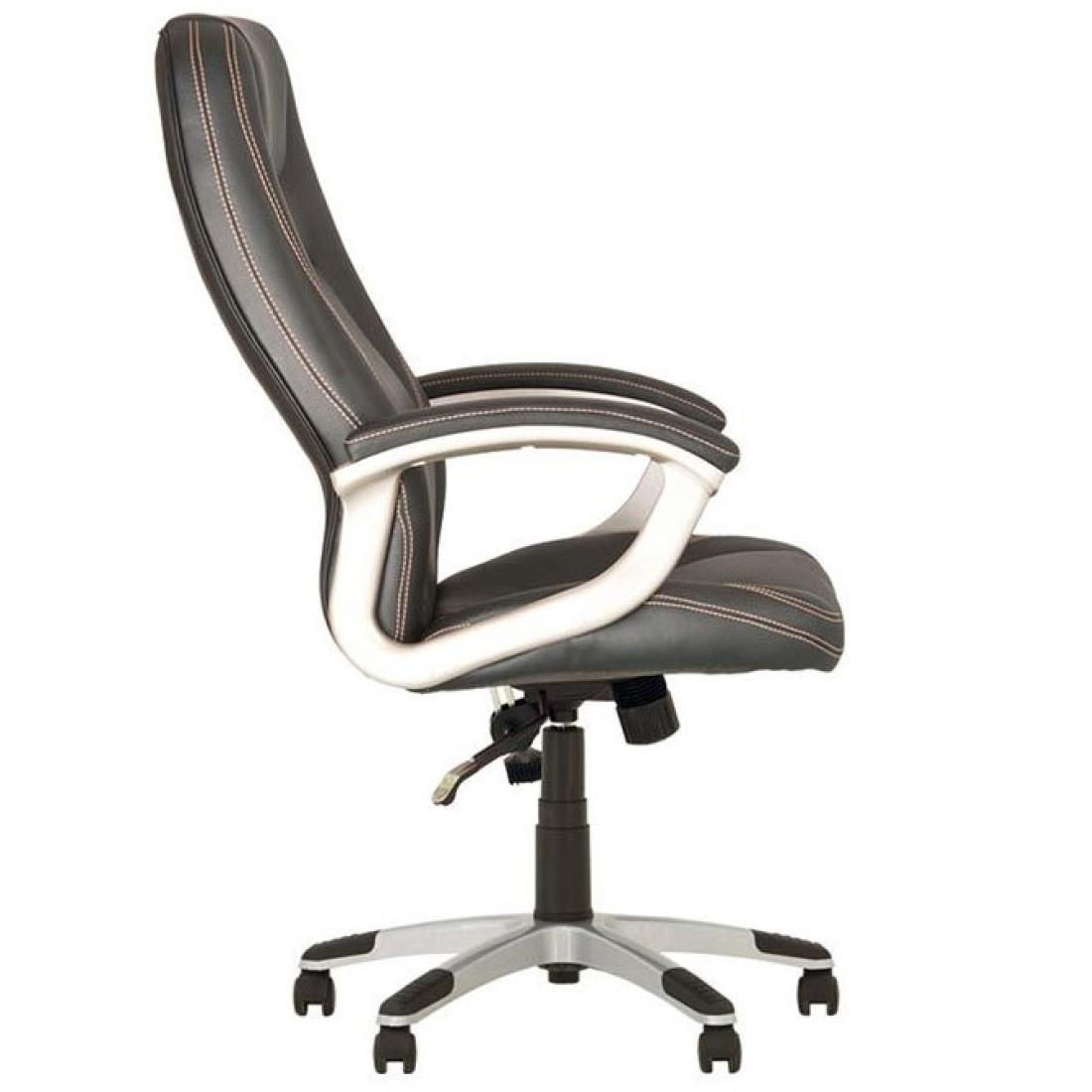 Особливості. Зручна ергономічна висока спинка має прогин в поясниці, що забезпечує вашій спині комфортну підтримку, і вам добре самопочуття навіть в кінці насиченного робочого дня. У сидіні крісла використовується міцна основа з фабрик, яка разом з поролоновим наповненням формує зручну посадку. Вигин в центральній частині сидіння та скошеній передній край формують правильну та зручну посадку та захищають від перетиснення судин ніг.