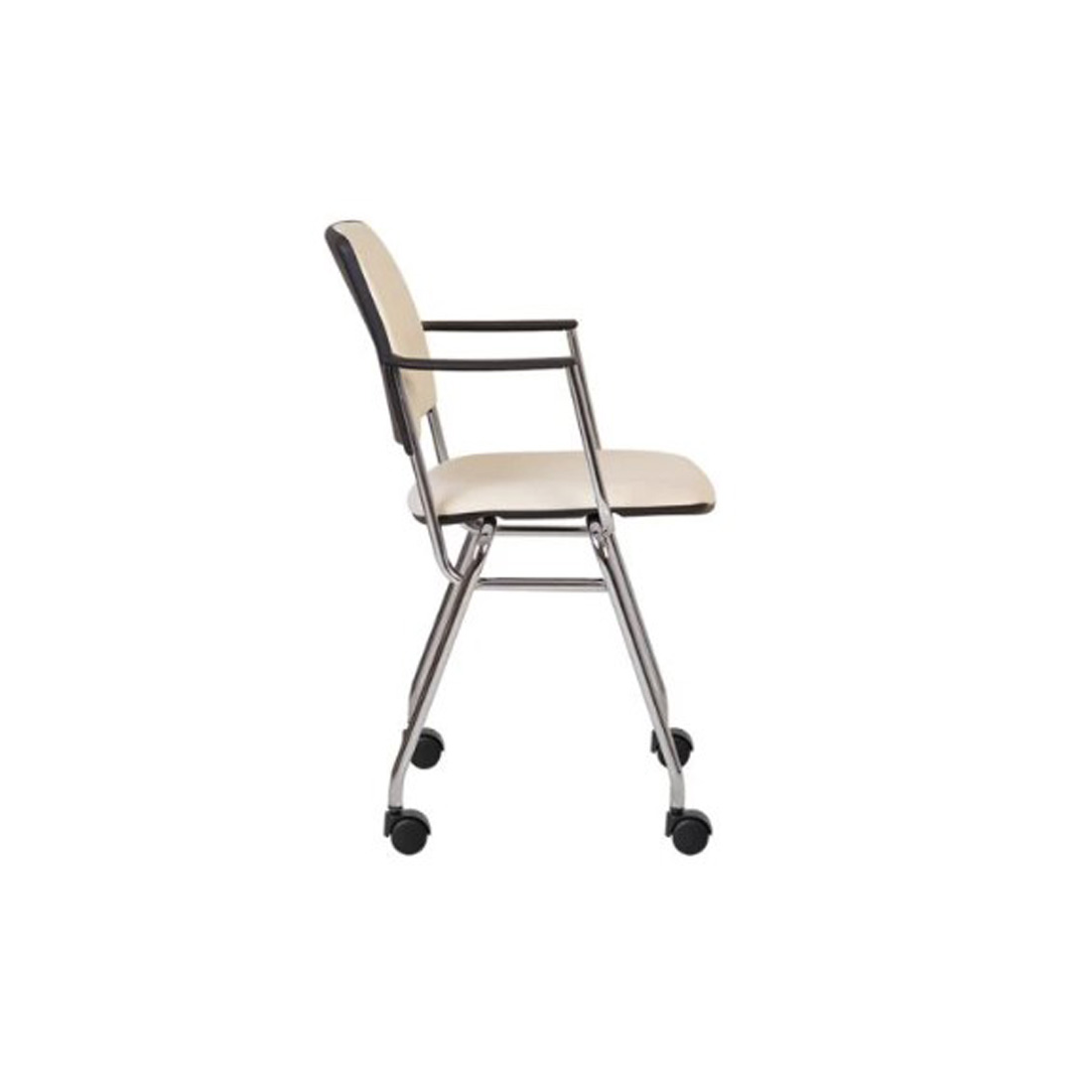Має ергономічну посадку та скошений край сидіння, з підлокітниками. Правильний кут нахилу спинки і м'який наповнювач дозволять зручно сісти і повністю розслабитися. Пластикові накладки на рамі захищають поверхню підлоги від пошкоджень. Дуже практична і зручна модель. Стілець ідеально підійде для облаштування обідньої зони, ресторану або кафе, салонів або інших громадських інтер'єрів, додасть вашому офісу особливу елегантність.