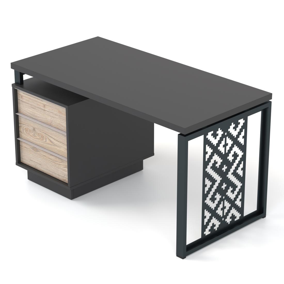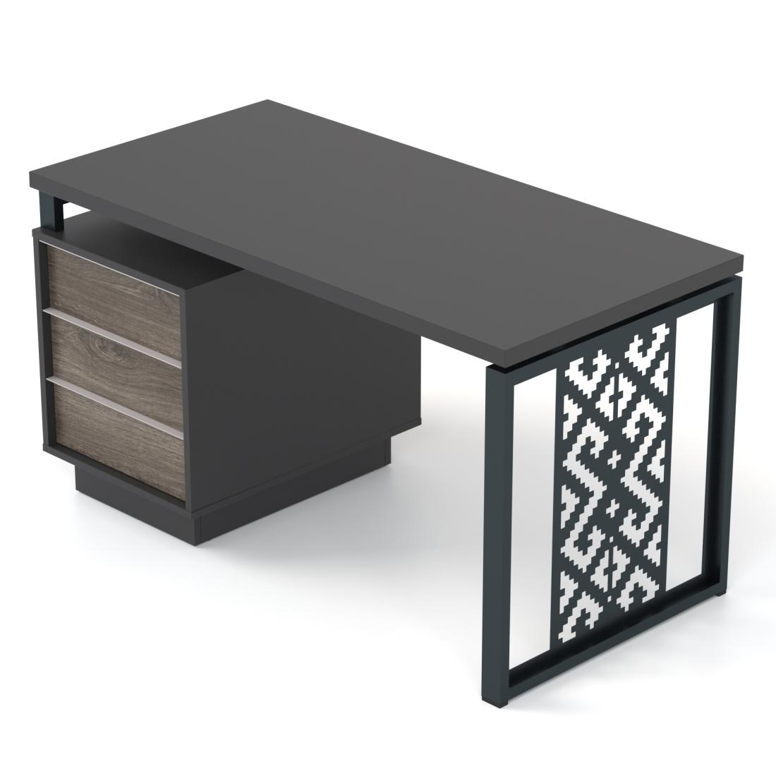"Промо Етно" від Salita™ — це нова концепція офісних столів на базі нашої серії "Промо". Столи даної серії мають унікальні опори з елементами українського орнаменту. Дані столи нададуть в дизайн вашого кабінету винятковий стиль та оригінальність. Міцний металевий каркас столів гармонійно поєднується з дерев'яною стільницею теплих тонів.