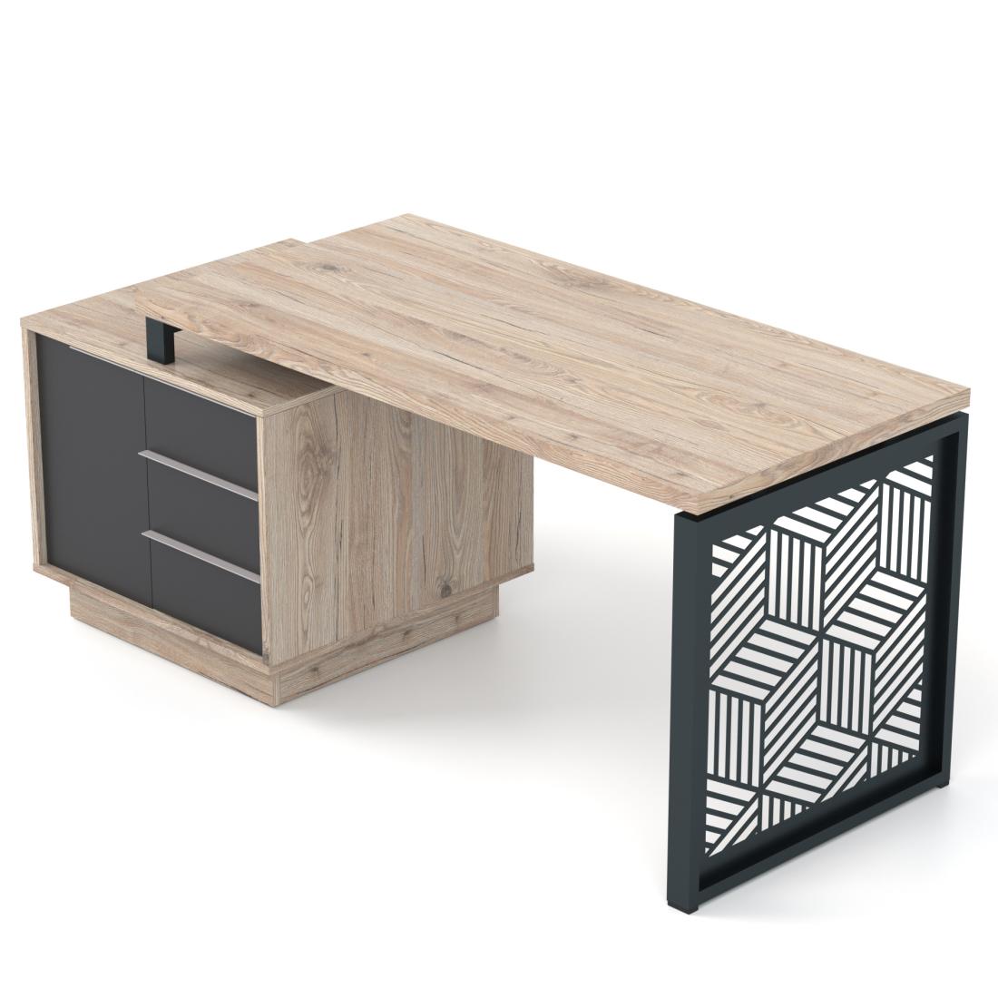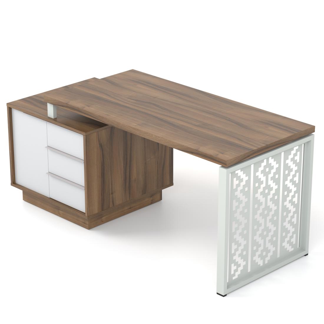 "Промо Етно" від Salita™ — це нова концепція офісних столів на базі нашої серії "Промо". Столи даної серії мають унікальні опори з елементами українського орнаменту. Дані столи нададуть в дизайн вашого кабінету винятковий стиль та оригінальність. Міцний металевий каркас столів гармонійно поєднується з дерев'яною стільницею теплих тонів.
