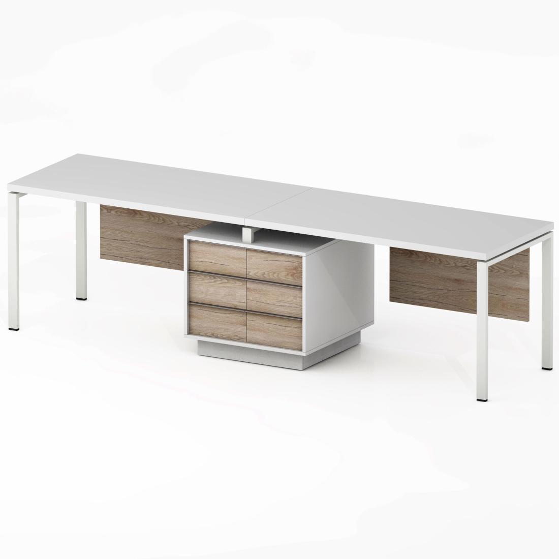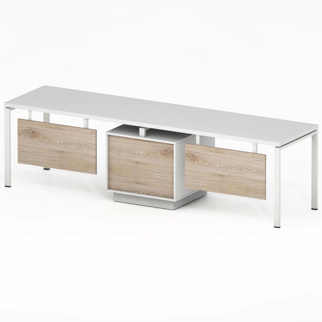 Завдяки особливій конструкції каркасу, складається враження, начебто стільниця "парить" над опорами. За бажанням замовника стільницю можна виготовити товщиною 18 або 36 мм. А опори можуть мати різні форми: Т (П-подібна форма), Q (прямокутна замкнута опора), R (трапецієвидна форма).
