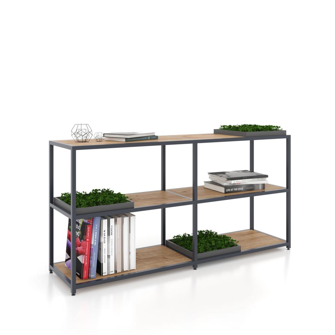 Металеві стелажі компанії Salita™ мають витончений та елегантний дизайн. У даній моделі надійний цільнозварний каркас, тому необхідність у збірці відсутня. Полички виконані з ламінованого ДСП. За бажанням кожен наш стелаж можна доповнити коробом з декоративною траваю.