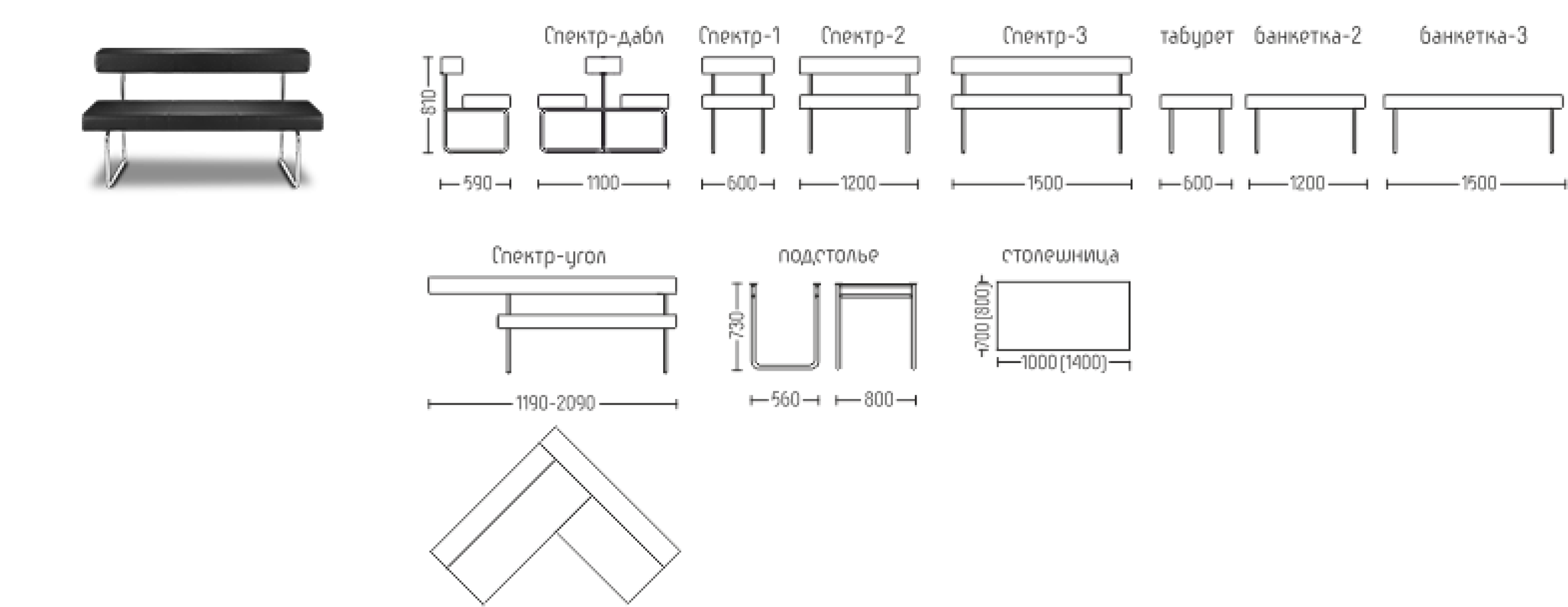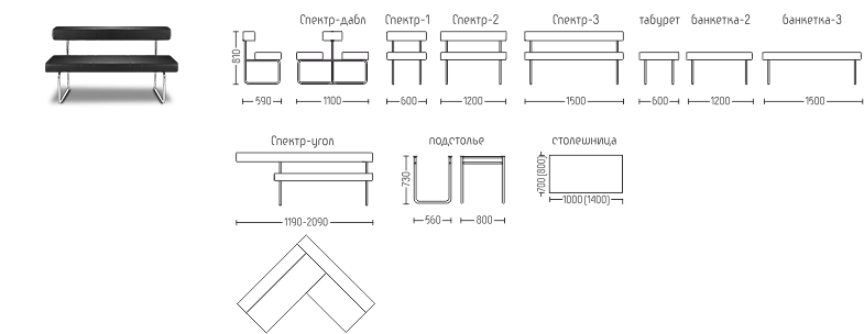 - двух-, трёхместная банкетка,