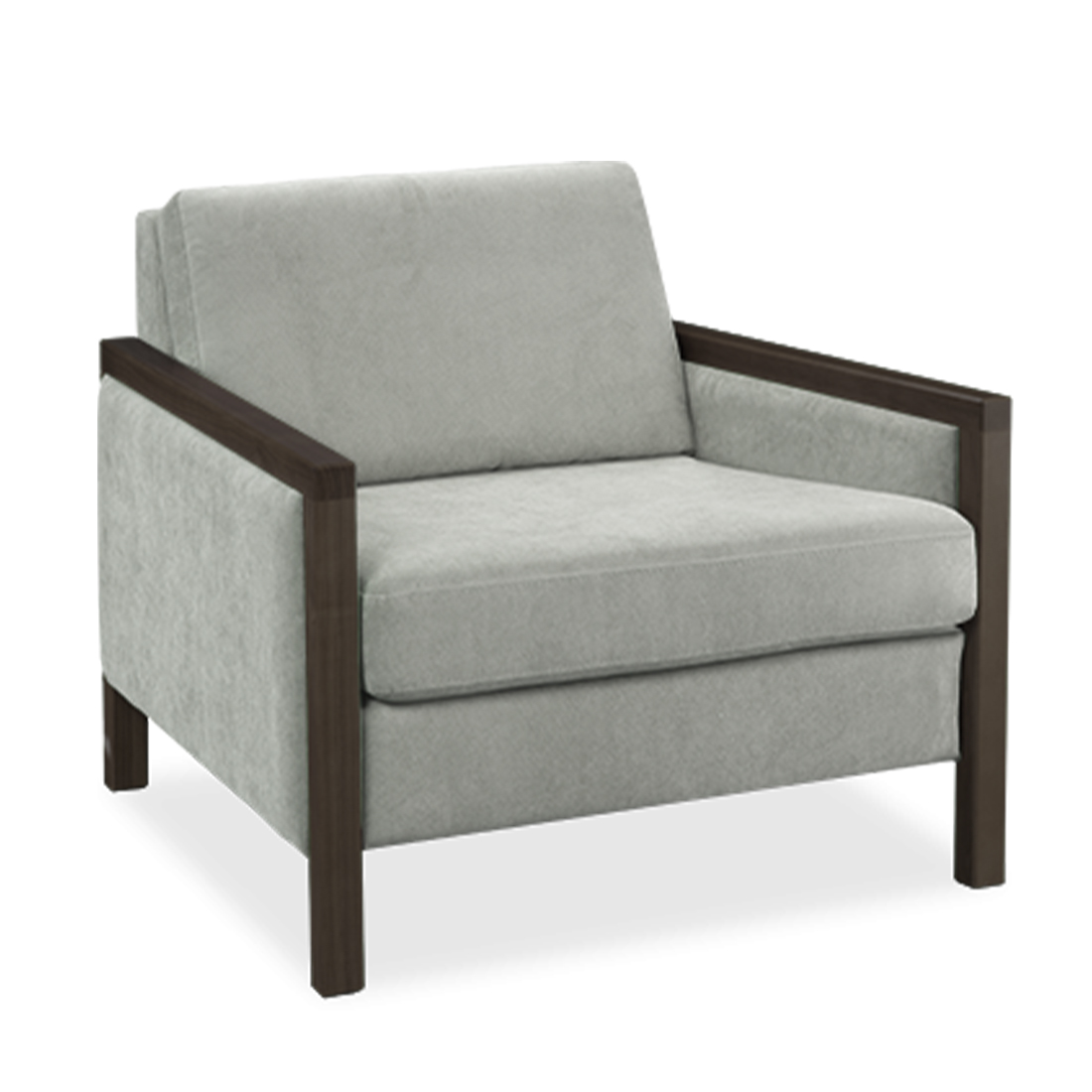 Опоры и подлокотники изделия изготовлены из дерева. Натуральный материал придает особую теплоту его облику. В интерьере вы можете синтезировать и развивать эту деталь, подчеркивая ее декором, аксессуарами, светильниками, напольной доской, деревянными панелями. Оттенок подбирайте на свой вкус. Текстура древесины отлично сочетается с белым цветом, широко используемым в скандинавском стиле, открытой кирпичной кладкой в лофте, стеклом в минимализме или отделками в этно-течениях.