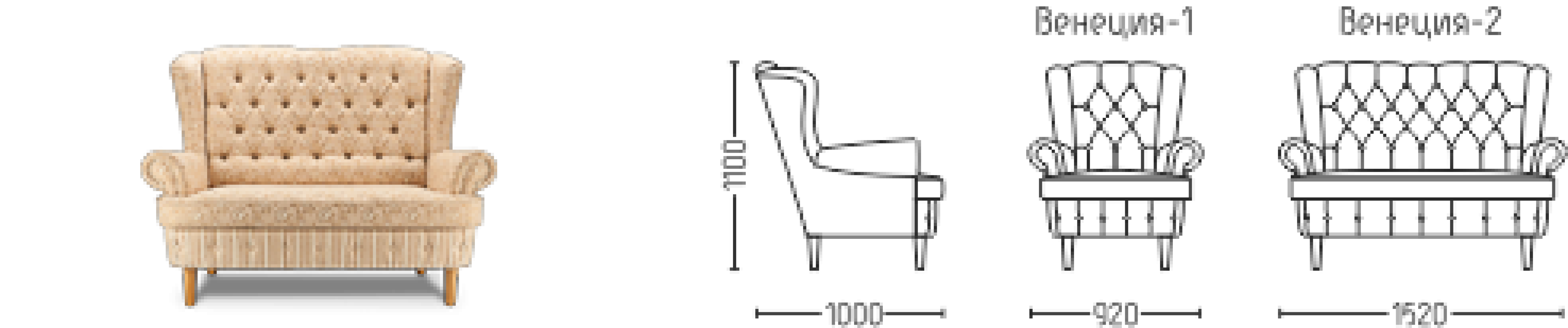 - передняя часть спинки оформлена в технике «капитоне».