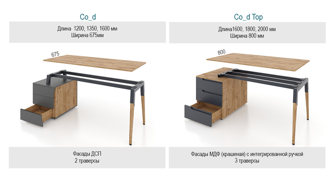 Мебель для руководителей Компаунд ТОП (Compound TOP/Co_d TOP) – отличное решение для организации современного офиса для руководителя в стиле эко. Столы на металлических опорах создают визуальную воздушность пространства, цветные детали добавляют красок в стильный дизайн. Особенность коллекции Co_d TOP – ножки из массива ясеня. Ясень имеет такие характеристики, как жесткость, долговечность и особый золотистый оттенок. Благодаря его использованию столы в серии Co_d TOP имеют хорошие и элегантные опоры. Co_d – концепция офисной мебели нового поколения – экологичность, лаконичность, функциональность.
