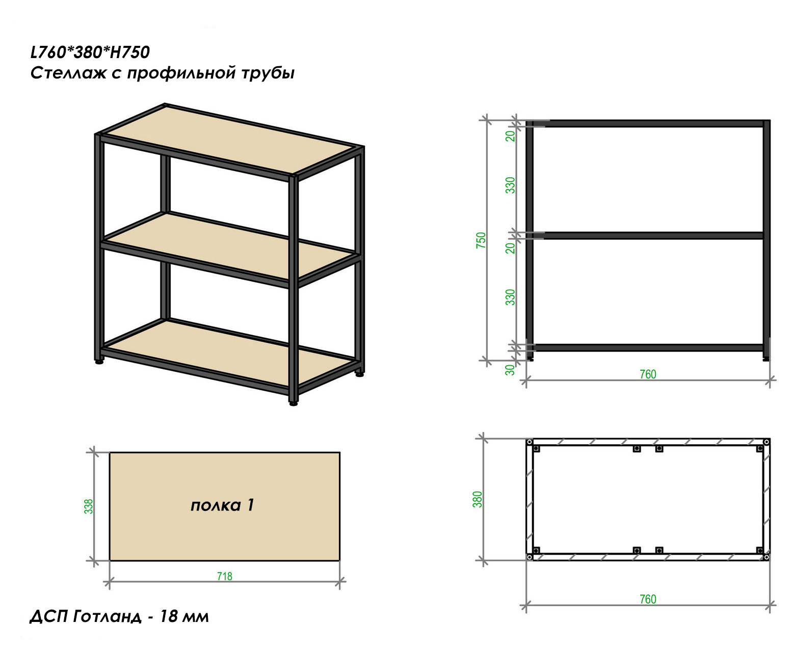 | Дополнительные характеристики | Толщина трубы каркаса 20*20 мм, полки - ДСП 18 мм. |