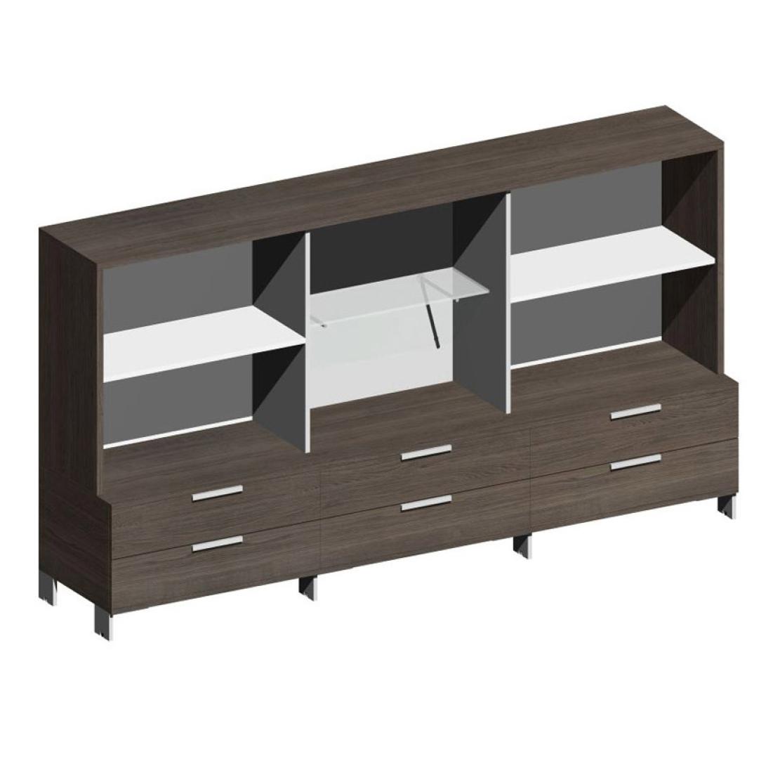 Кабинет Эволюшен идеально подойдет практичному руководителю, который ценит комфорт, надежность и высокий уровень функциональности. Все детали комплекта продуманы до мелочей, мебель характеризуется безупречным качеством отделочных материалов, фурнитуры и завершенностью каждой линии.