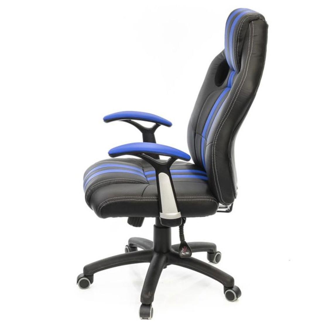 Обивка. Основной обивочный материал кресла Гурон - экокожа высокого качества. Это современный материал на натуральной хлопковой основе. Яркое цветовое сочетания обивок - синий с черным - позволят вашему креслу создать интересное дизайнерское решение в современном интерьере. Белая контрастная строчка делает детали более четкими и завершенными.