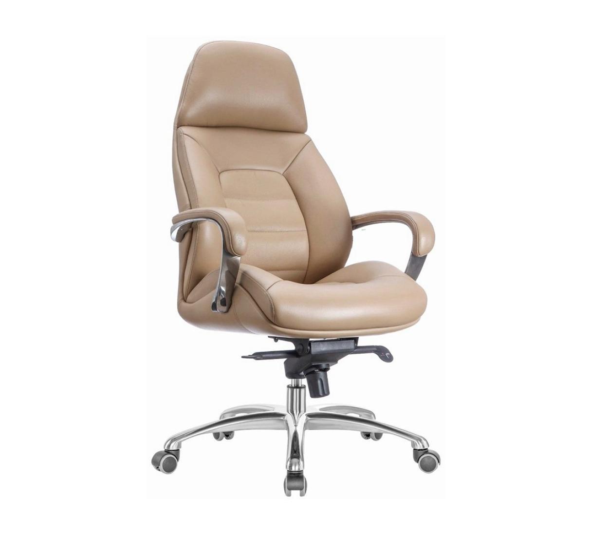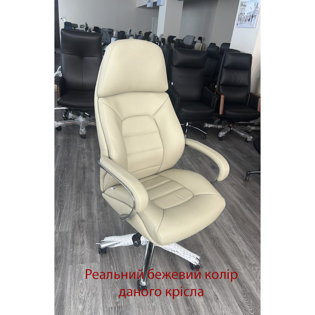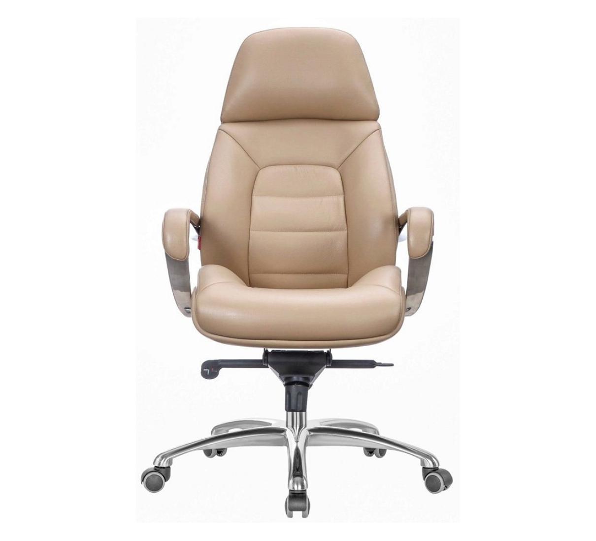 Кресло для руководителя F181 BEIL - в бежевом цвете придаст интерьеру ощущение солидности и стабильности, благодаря чему эта модель будет только положительно сказываться на формировании имиджа компании. Спинка визуально разделена на две части: нижняя – с дизайнерской прострочкой и выступающими краями обеспечивает хорошую боковую поддержку спины, верхняя гладкая играет роль подголовника.