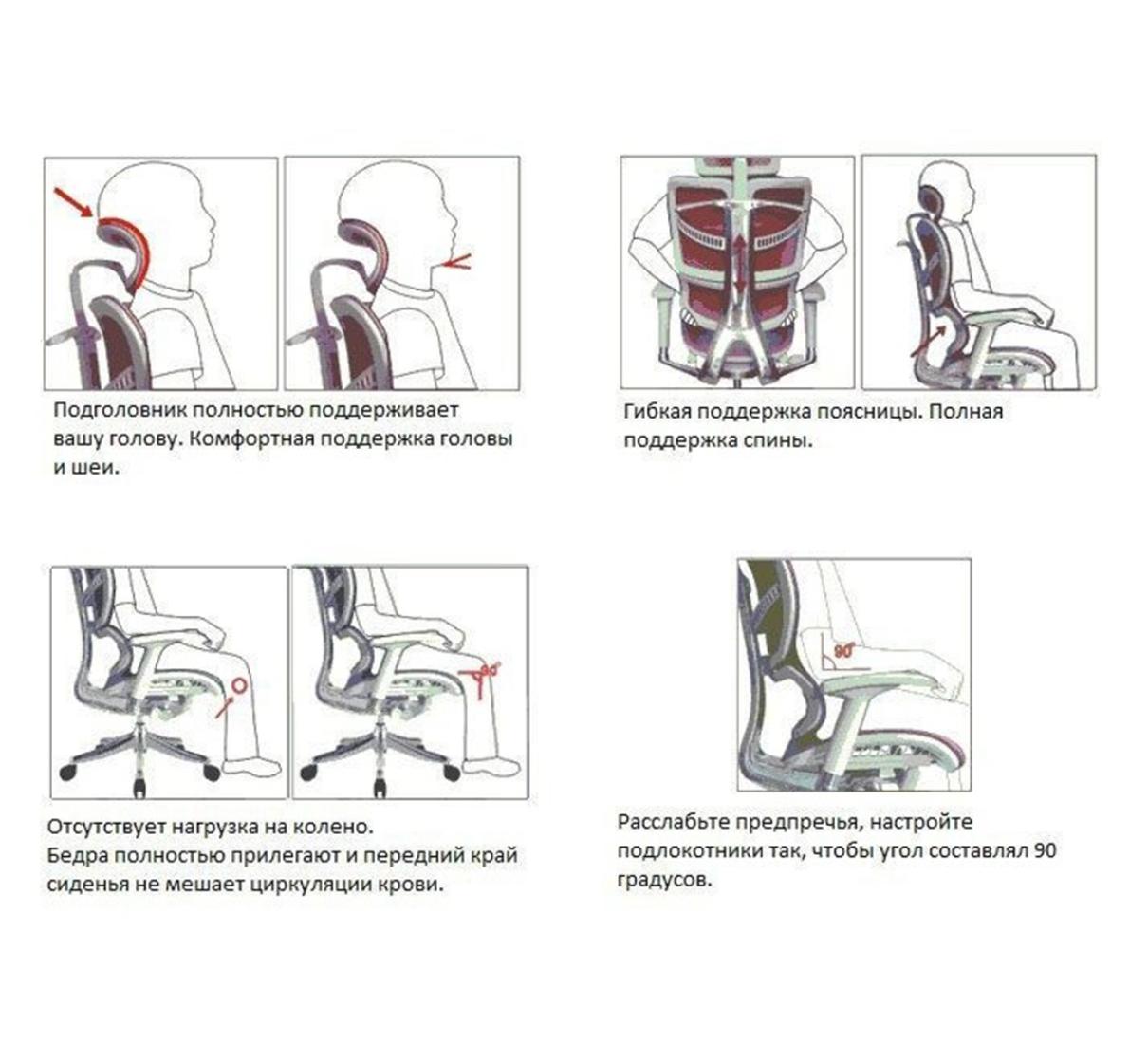 Регулировки | высота кресла, жесткость качания, фиксация наклона, глубина сиденья |
