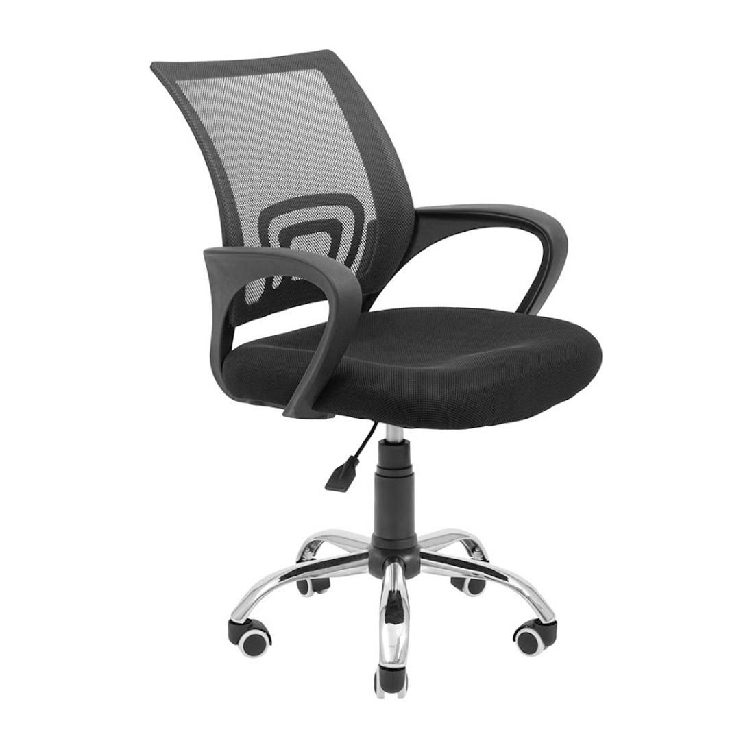 Обивка кресла выполнена из воздухопроницаемой ткани и нейлоновой сетки. Спинка имеет поясничную поддержку, а пластиковые подлокотники имеют продуманную изогнутую форму, что позволяет удобно разместить на них руки.