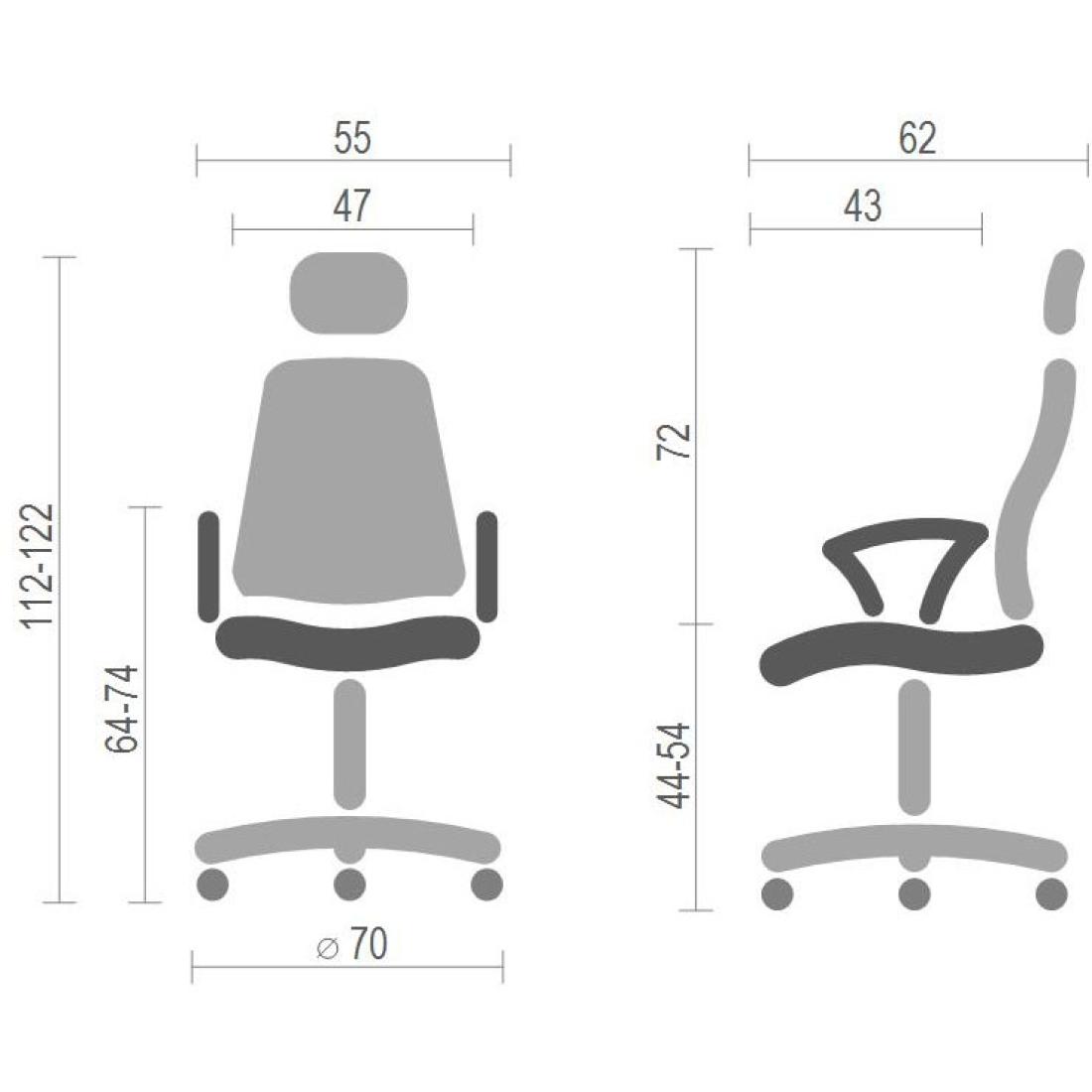 Особенности. Удобная эргономичная высокая спинка имеет прогиб в пояснице, который обеспечивает вашей спине комфортную поддержку, а вам хорошее самочувствие даже в конце насыщенного рабочего дня. В сиденье кресла используется прочное основание из фанеры, которое вместе с поролоновым наполнением формируют удобную посадку. Углубление в центральной части сиденья и скошенный передний край формируют правильную и удобную посадку и защиту от пережима сосудов ног. Посадка средней жесткости поможет устроиться в кресле комфортно, но в то же время будет поддерживать тело в тонусе. Удобный подголовник регулируется по высоте.