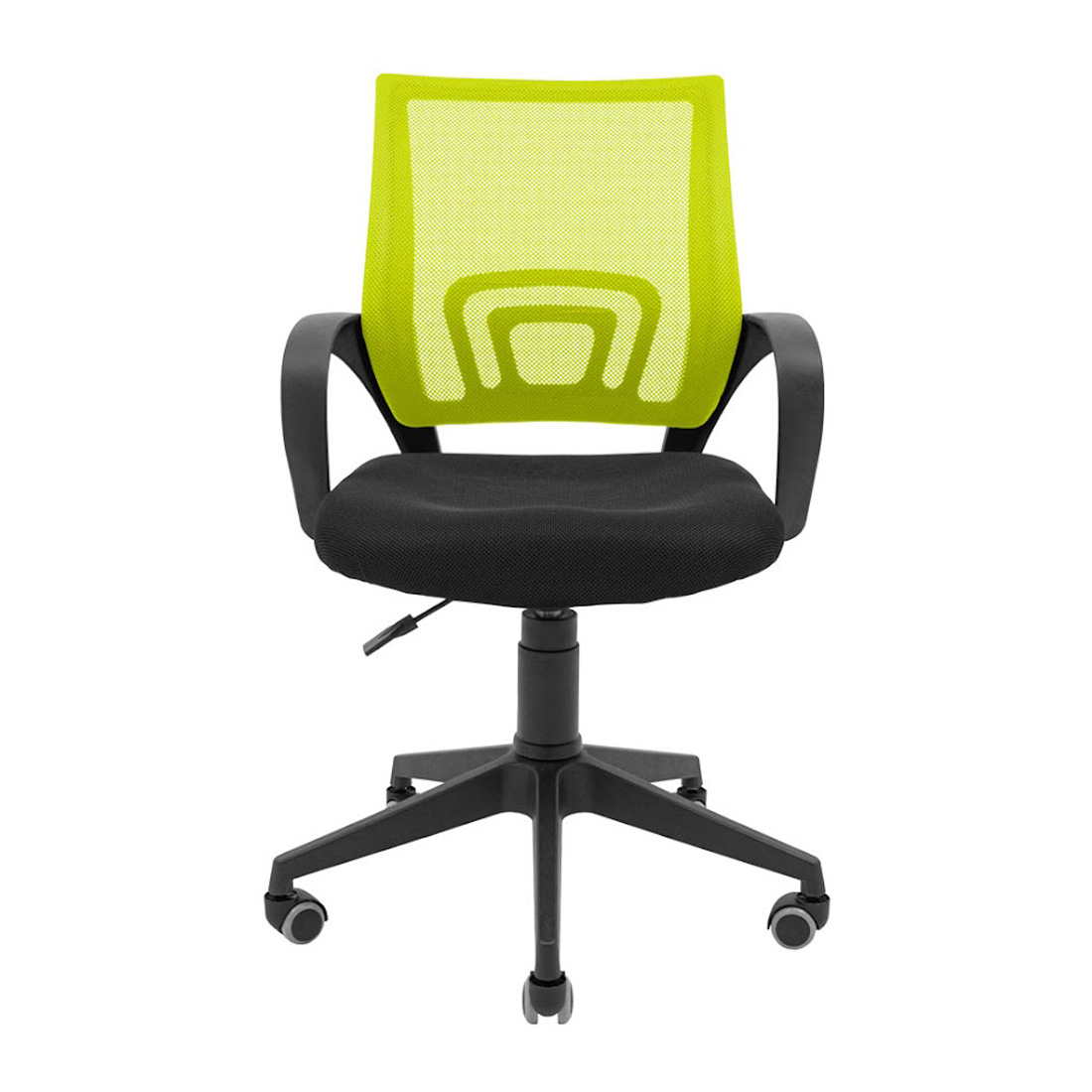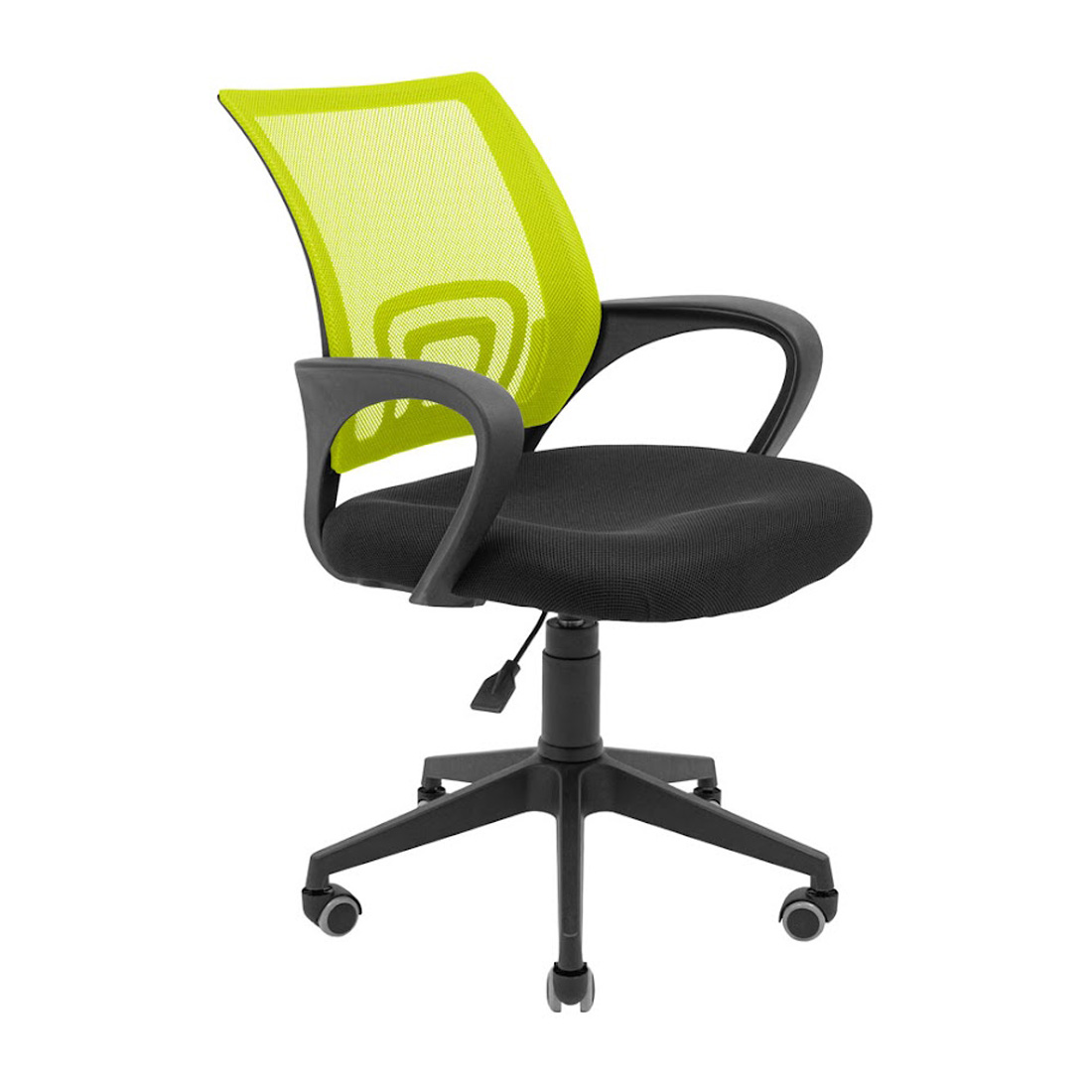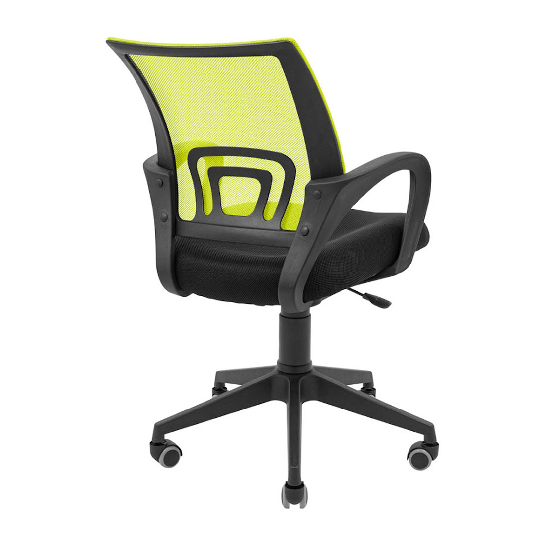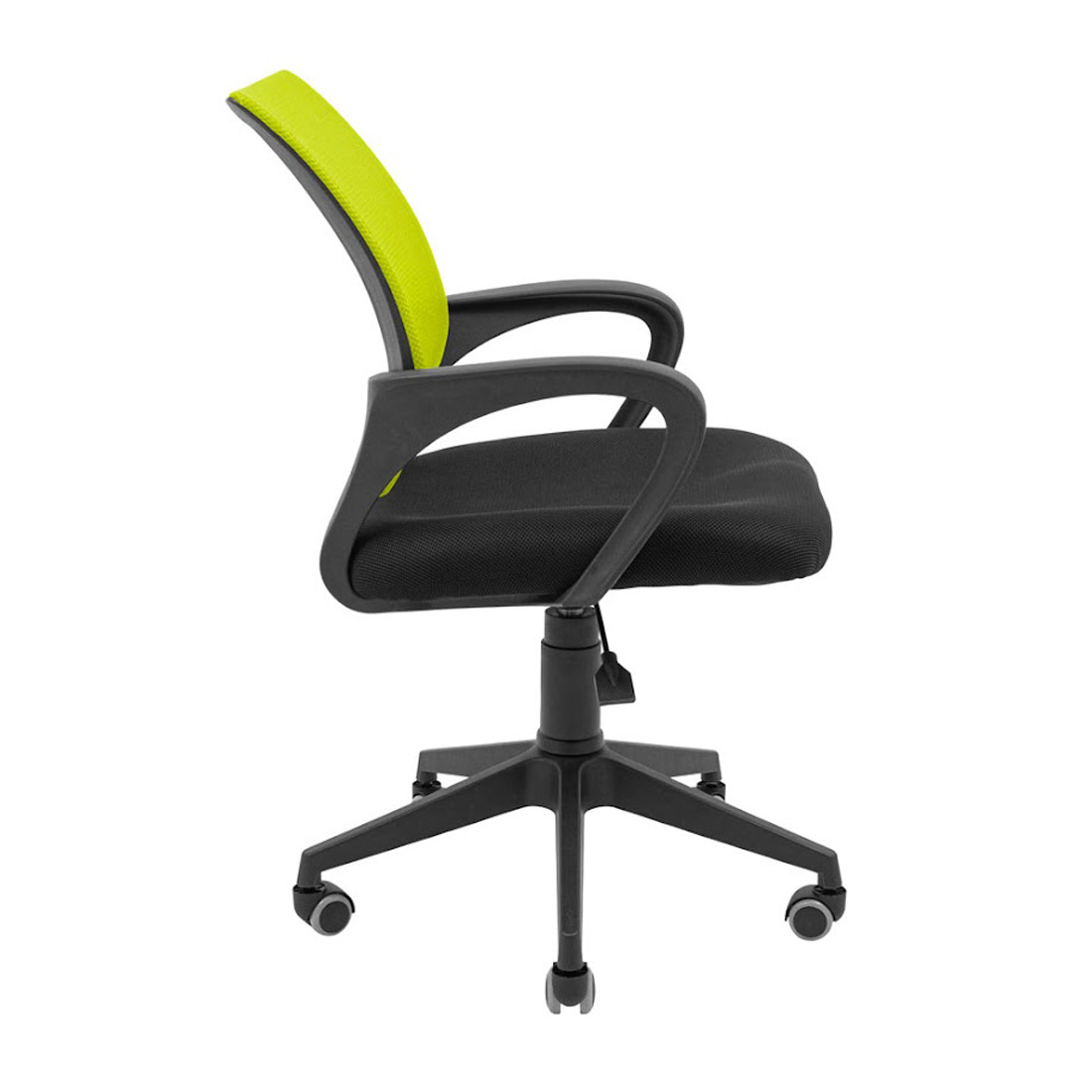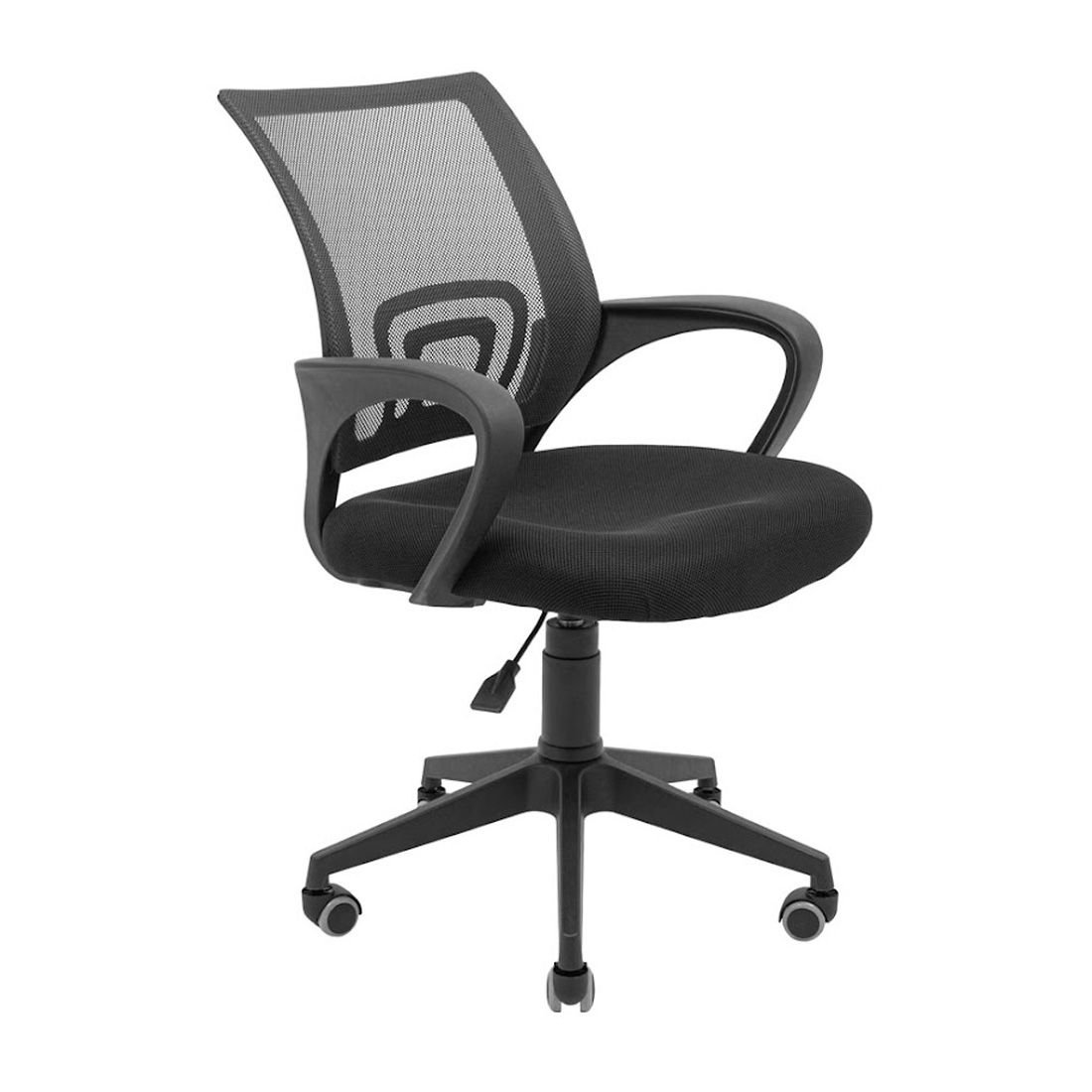Обивка кресла выполнена из воздухопроницаемой ткани и нейлоновой сетки. Спинка имеет поясничную поддержку, а пластиковые подлокотники имеют продуманную изогнутую форму, что позволяет удобно разместить на них руки.
